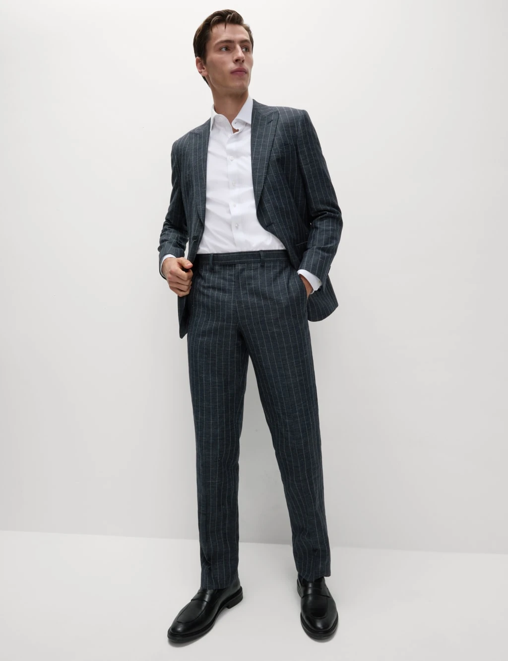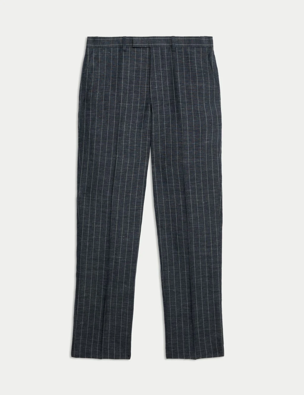 These wool-rich trousers from the M&S Sartorial range will make a timeless addition to your formal wardrobe. They’re made to a regular fit with a flat front for a contemporary look. A lining offers comfort, while the hook bar and zip fastening ensure a neat finish. The fabric contains linen, giving the pinstripe design a textured effect. M&S Sartorial: Luxury tailoring inspired by Savile Row; fusing exceptional craftsmanship with superior fabrics.
