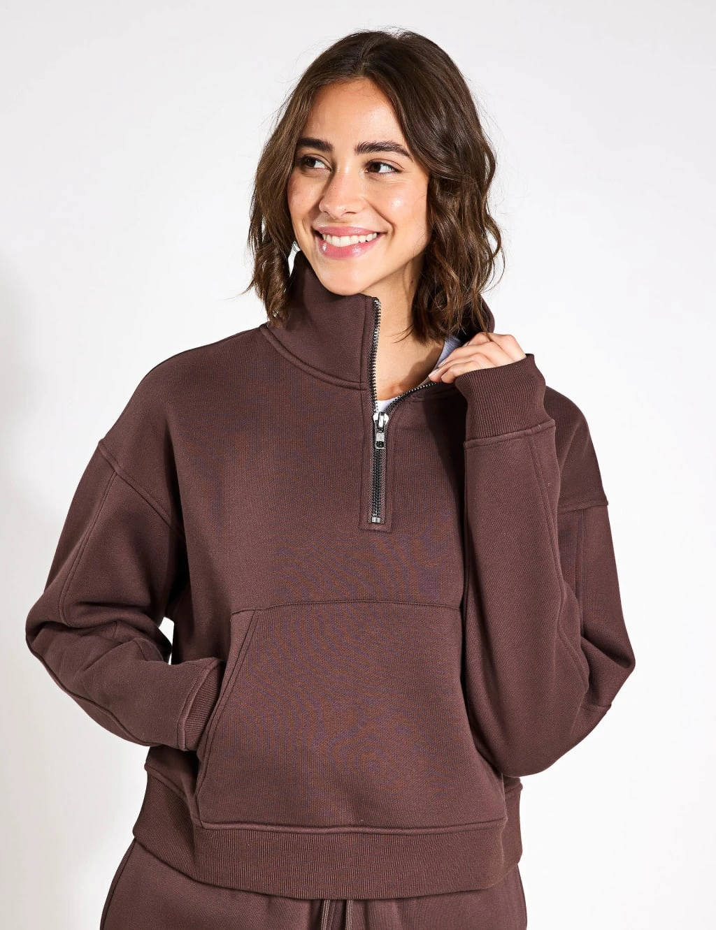 The cotton-rich Rihanna sweatshirt from Lilybod is an ideal layering piece for active days. It’s cut in a regular fit, with a cosy funnel neck and a half-zip fastening. A kangaroo pocket provides room for your essentials, while ribbed trims create a neat finish.