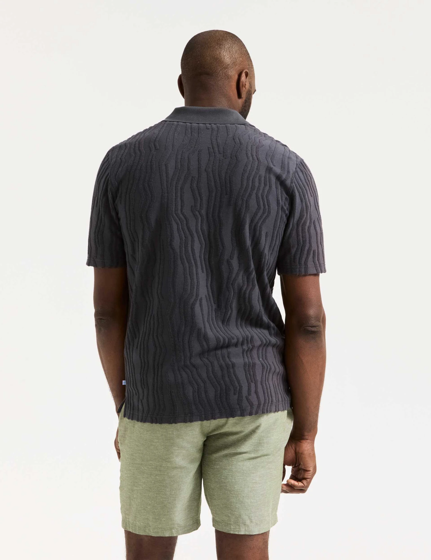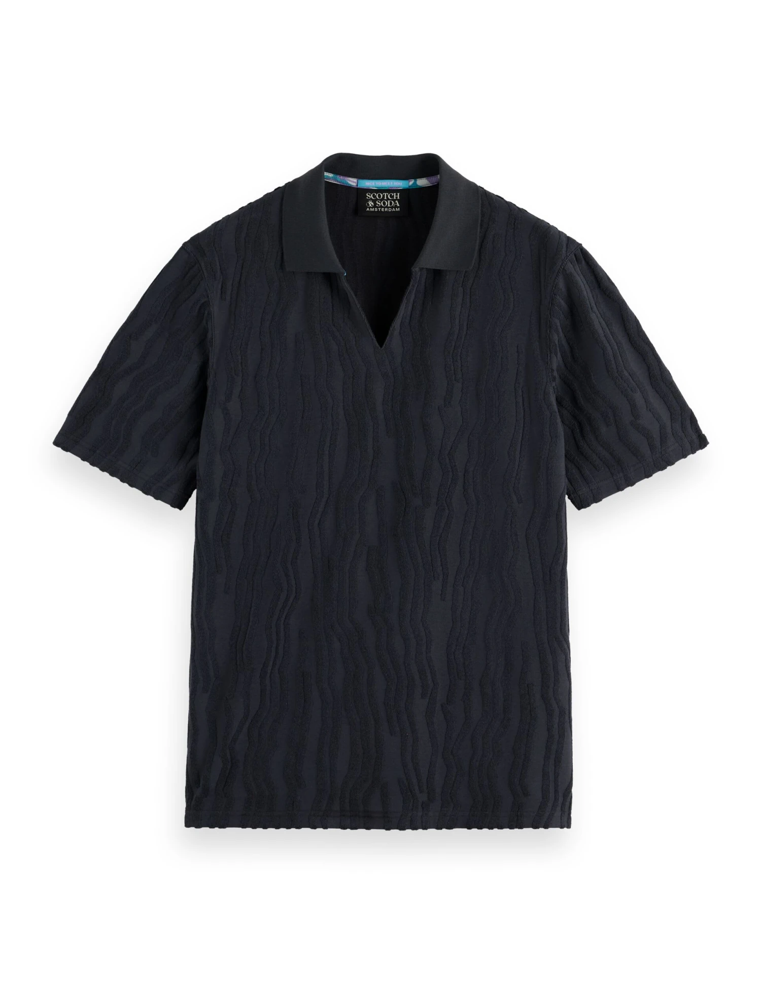 A textured jacquard design brings a statement twist to this cotton-rich polo shirt by Scotch & Soda. It’s cut in a regular fit, with a soft collar above a v-neckline for a laidback look. This piece has breezy short sleeves and neat side splits at the hem.