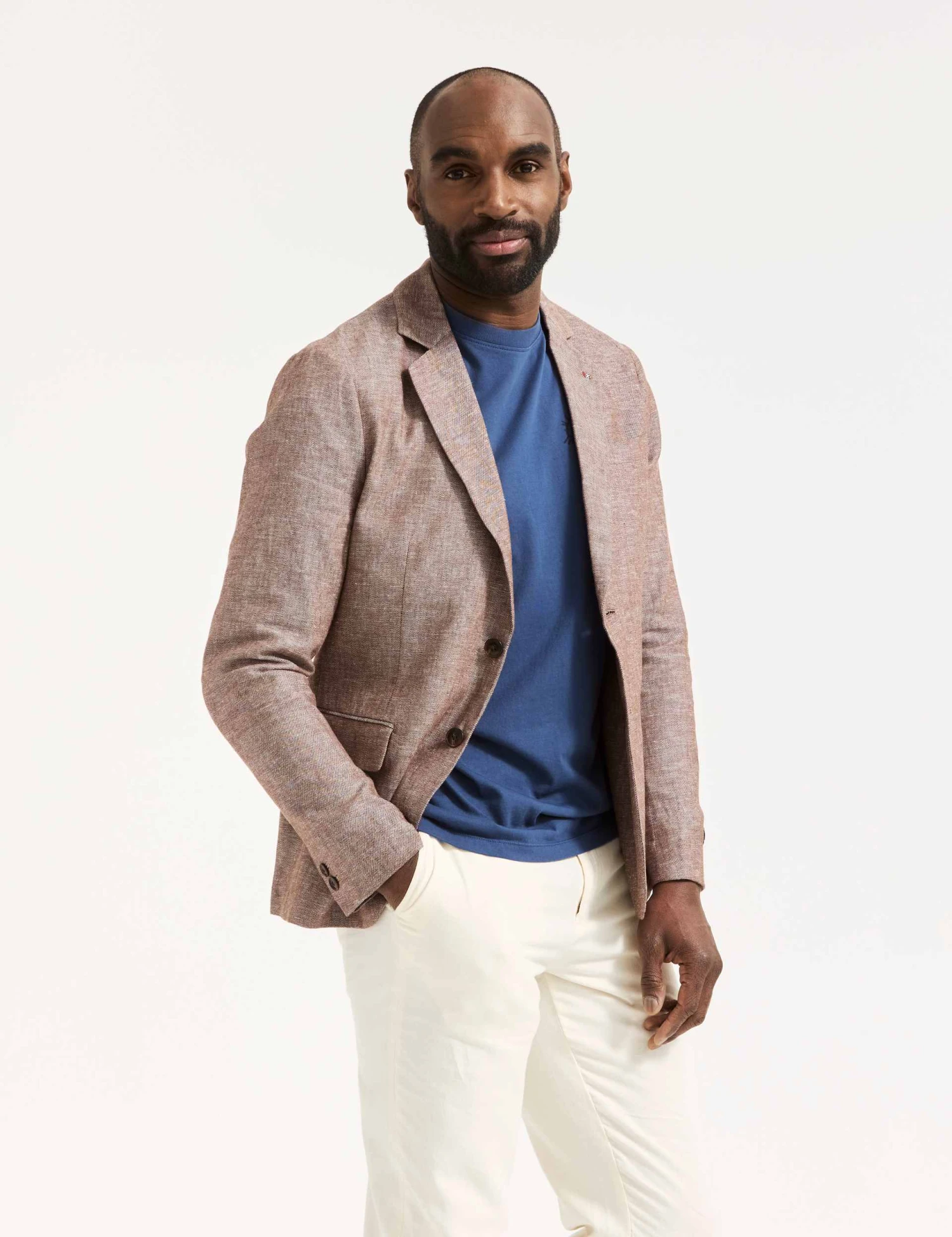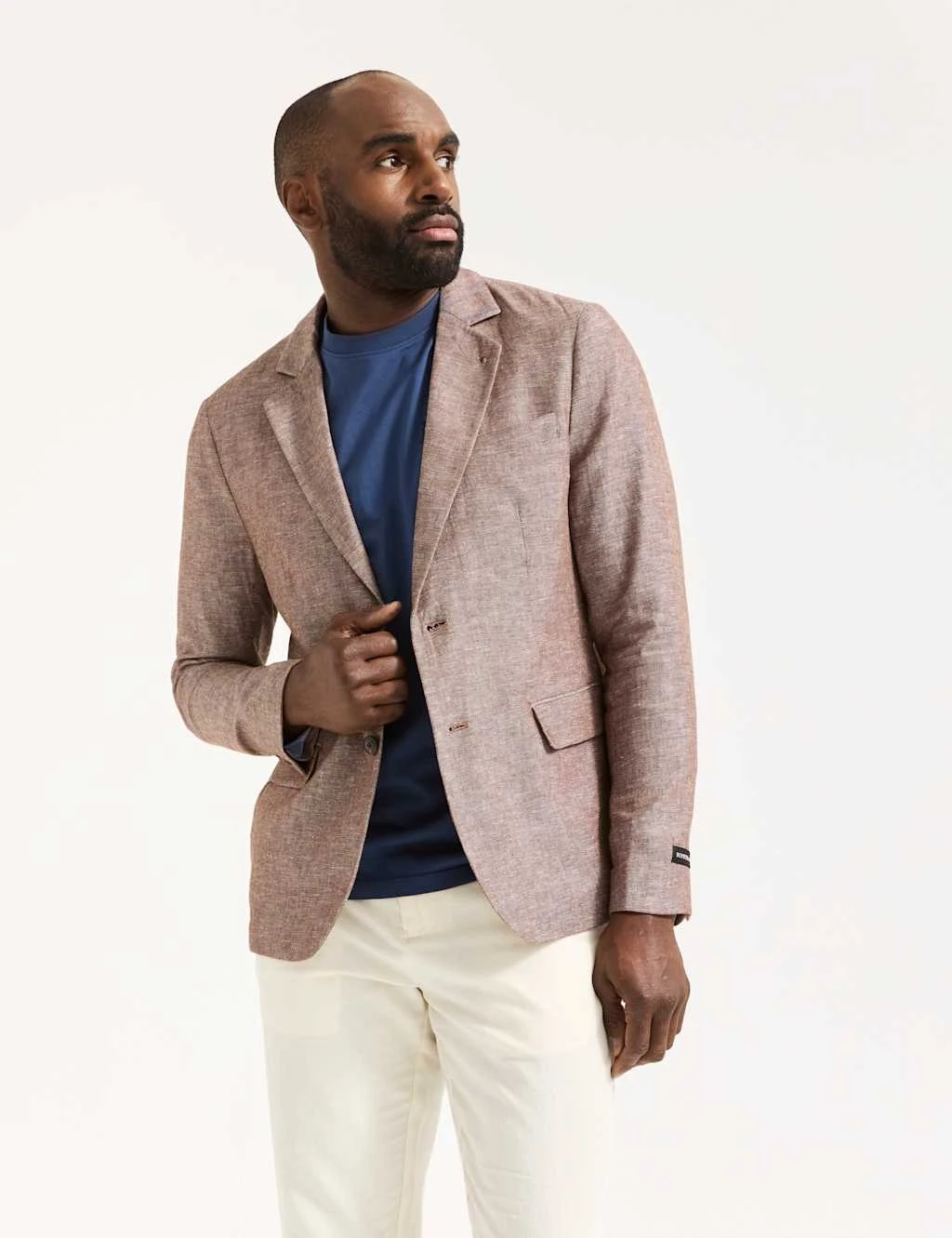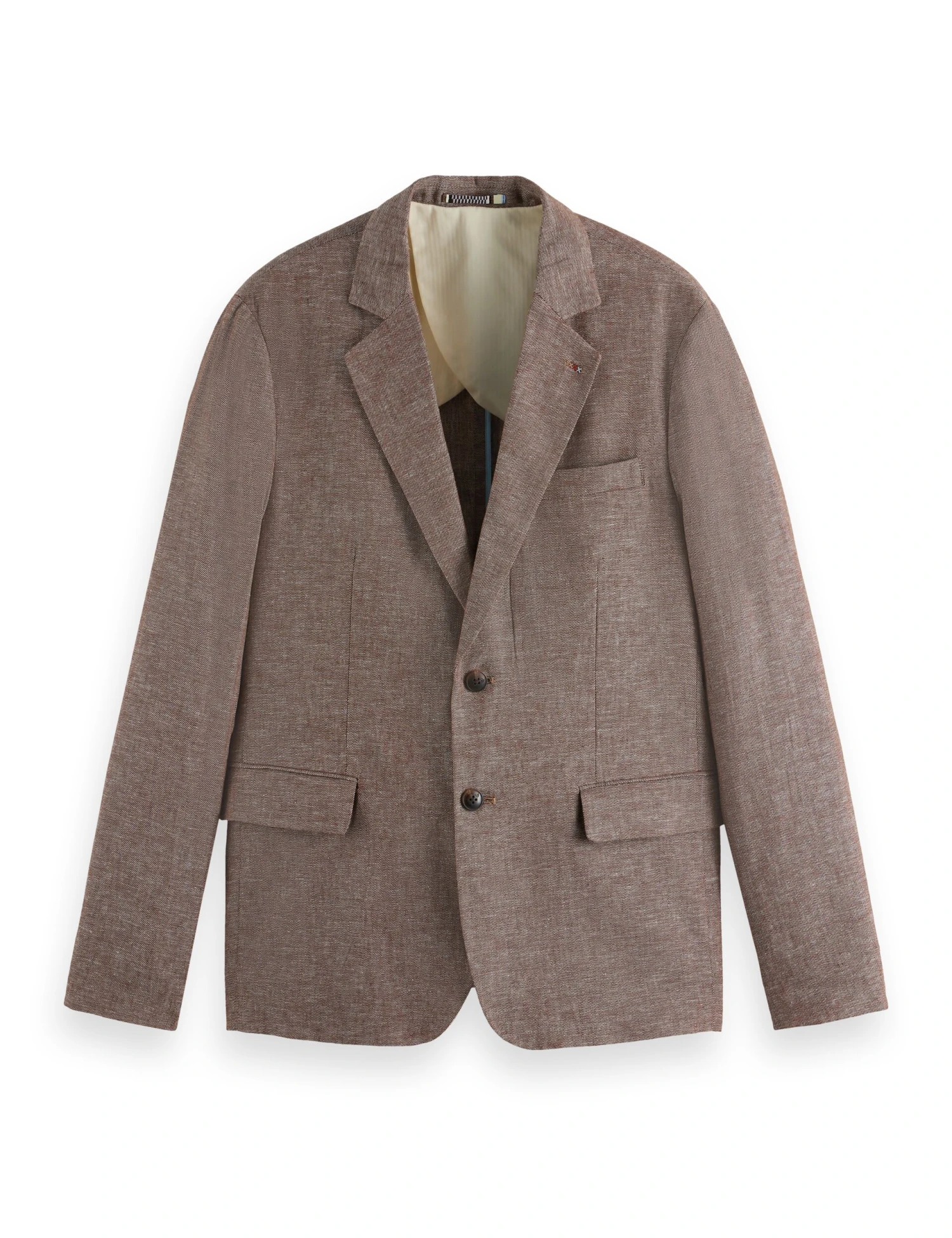 This single-breasted blazer from Scotch & Soda is crafted from a breathable blend of linen and cotton, making it ideal for warmer weather. It’s cut in a comfy regular fit, with a back vent for easy movement. Notched lapels and a trio of front pockets provide classic tailored touches.