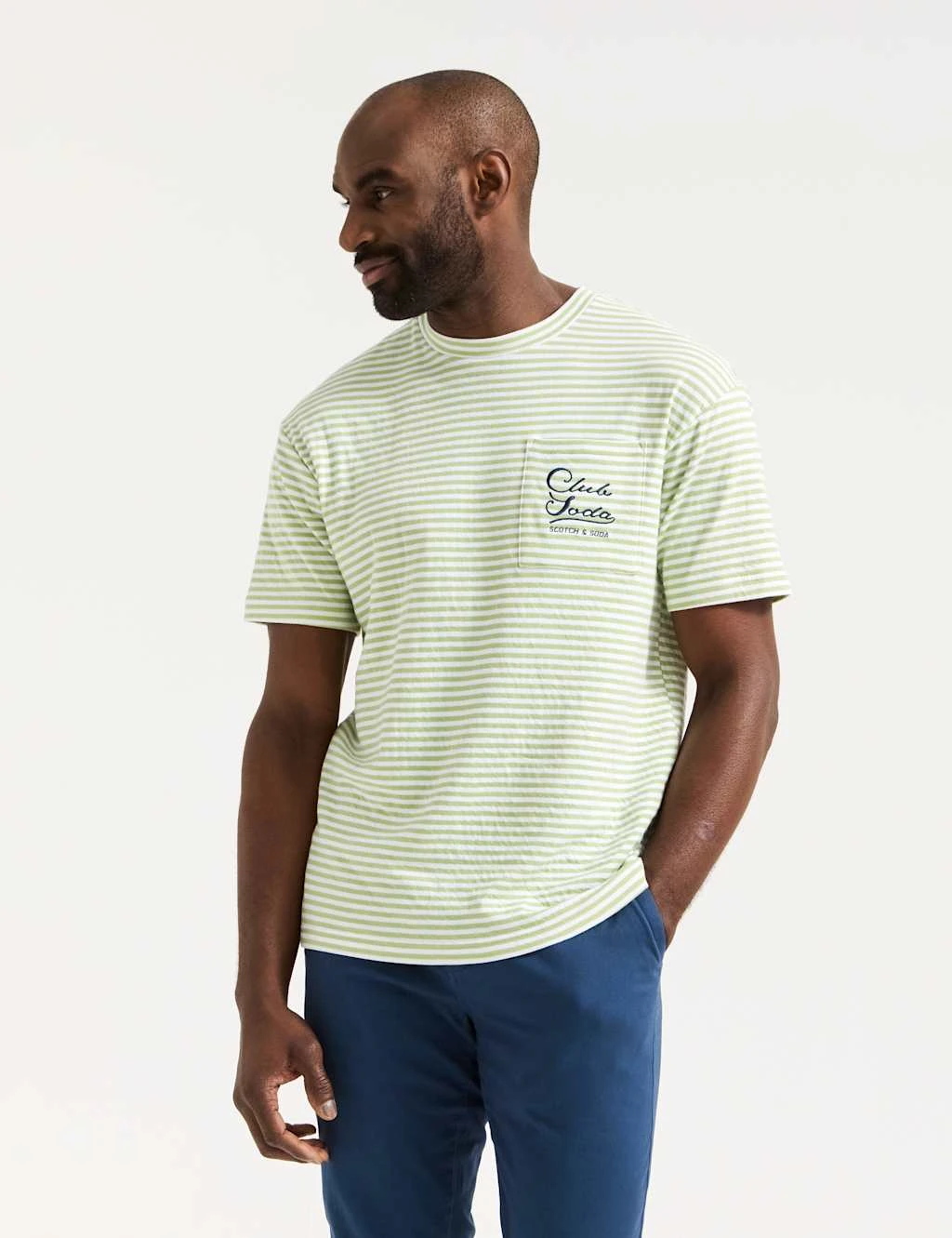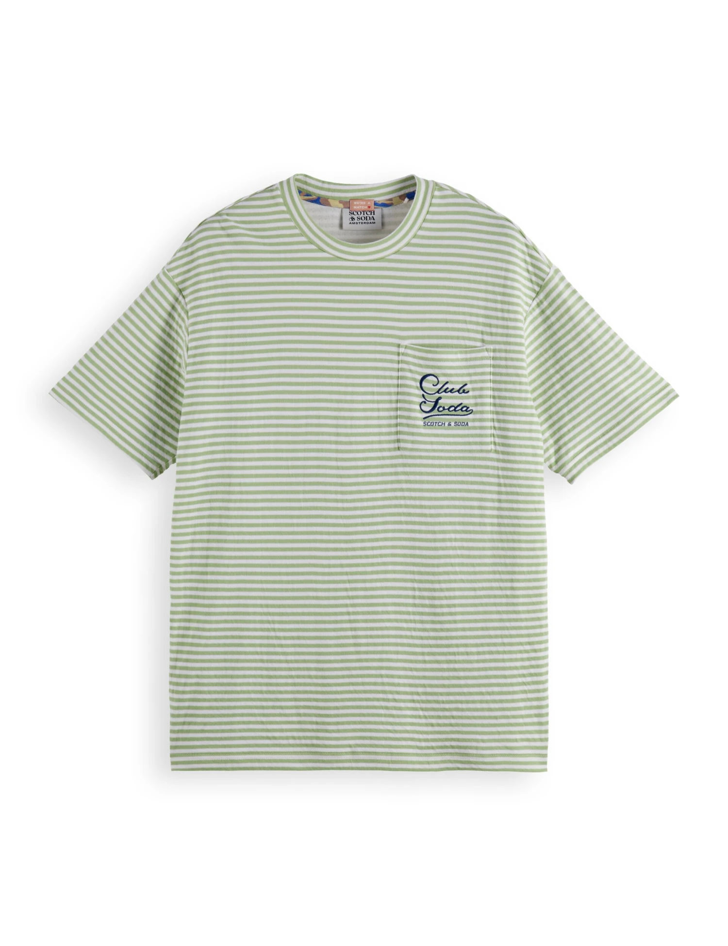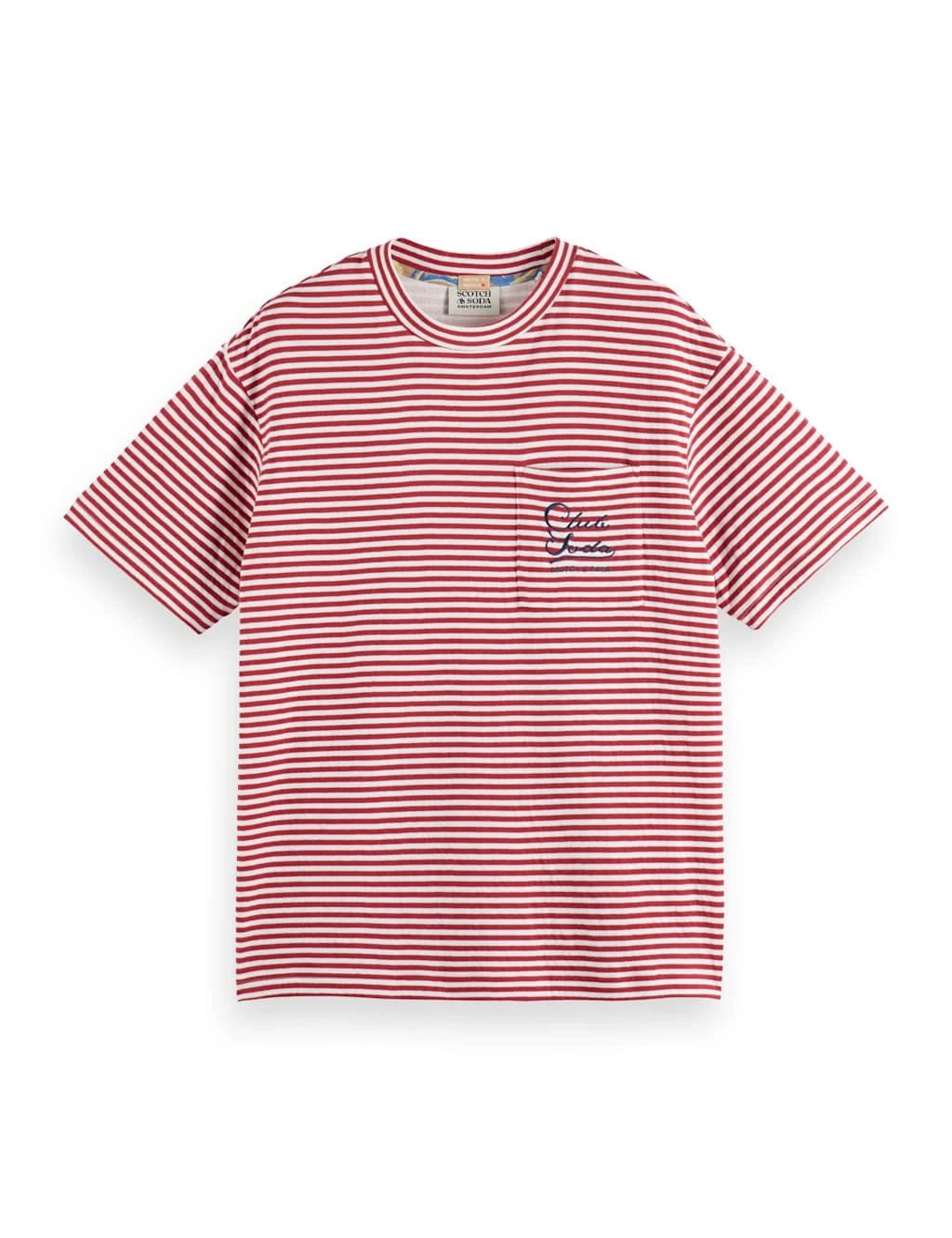 Bring laidback style to your off-duty looks with this striped t-shirt from Scotch & Soda. It’s cut to a regular fit from soft and breathable, pure cotton jersey. This crew-neck piece features a chest pocket, embroidered with a ‘Club Soda’ slogan, underscored by the brand’s name.