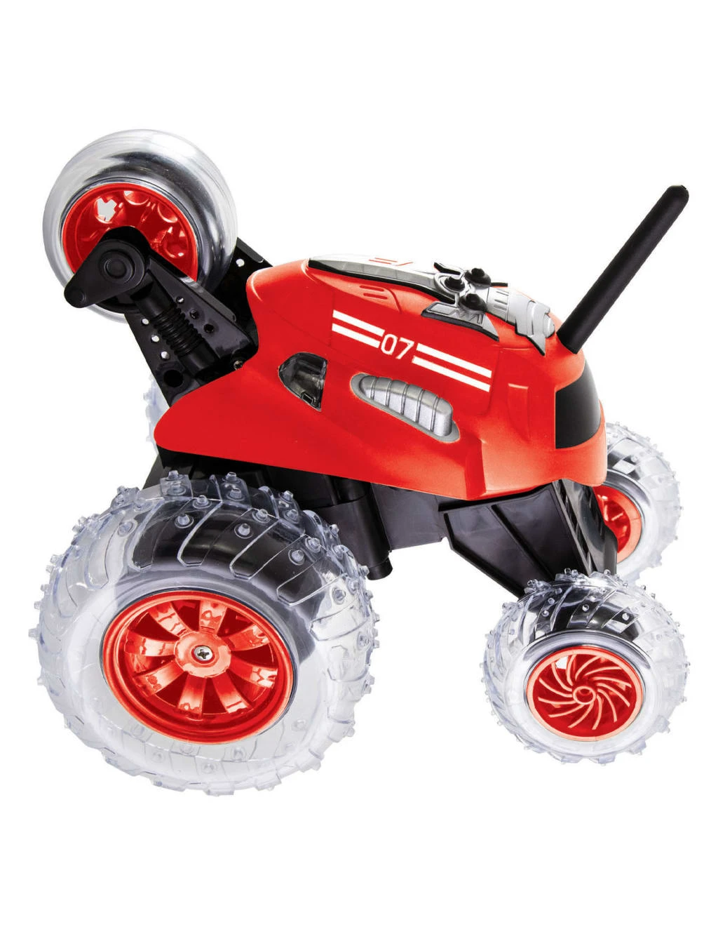 Perform stunts and race in style with this Sharper Image remote-controlled car. It has a unique monster truck and race car hybrid design that kids will love. An extra stunt wheel on the back means it can perform 360s, flips and tumbles. The car comes with a wireless dual joystick control and LED lights for better control. Suitable for children over 6 years.