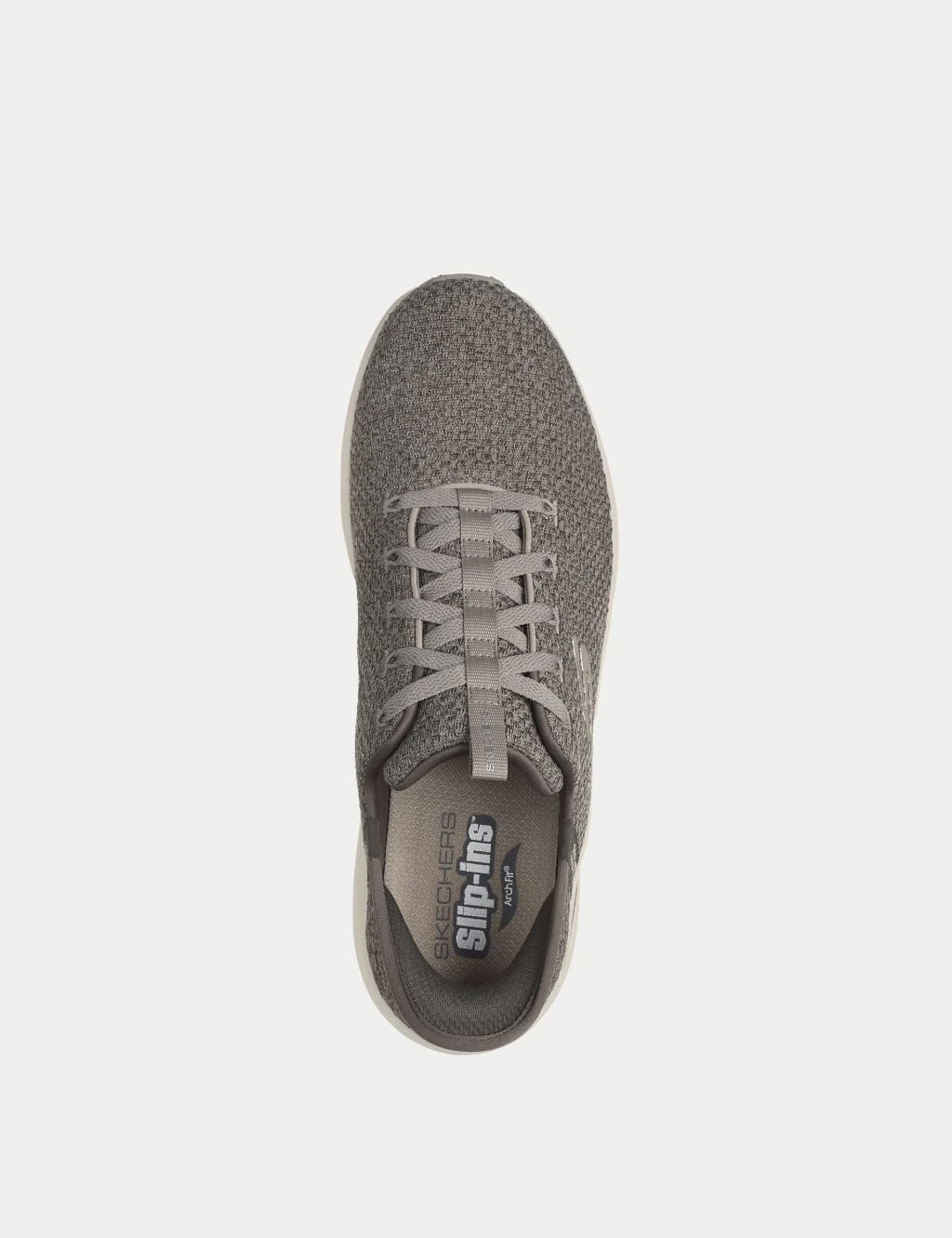 These Skechers trainers bring a sporty edge to your casual looks. They’re made with a slip-on design for easy on-off and have a breathable knitted upper. Removable Arch Fit® insoles provide support where you need it most, while the brand’s Heel Pillow™ technology holds your foot securely in place. Brading on the side adds a subtle signature touch.