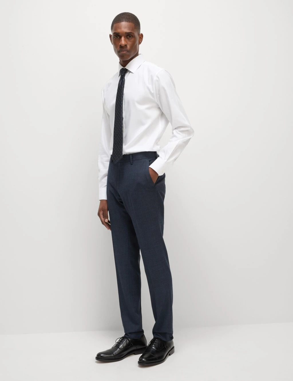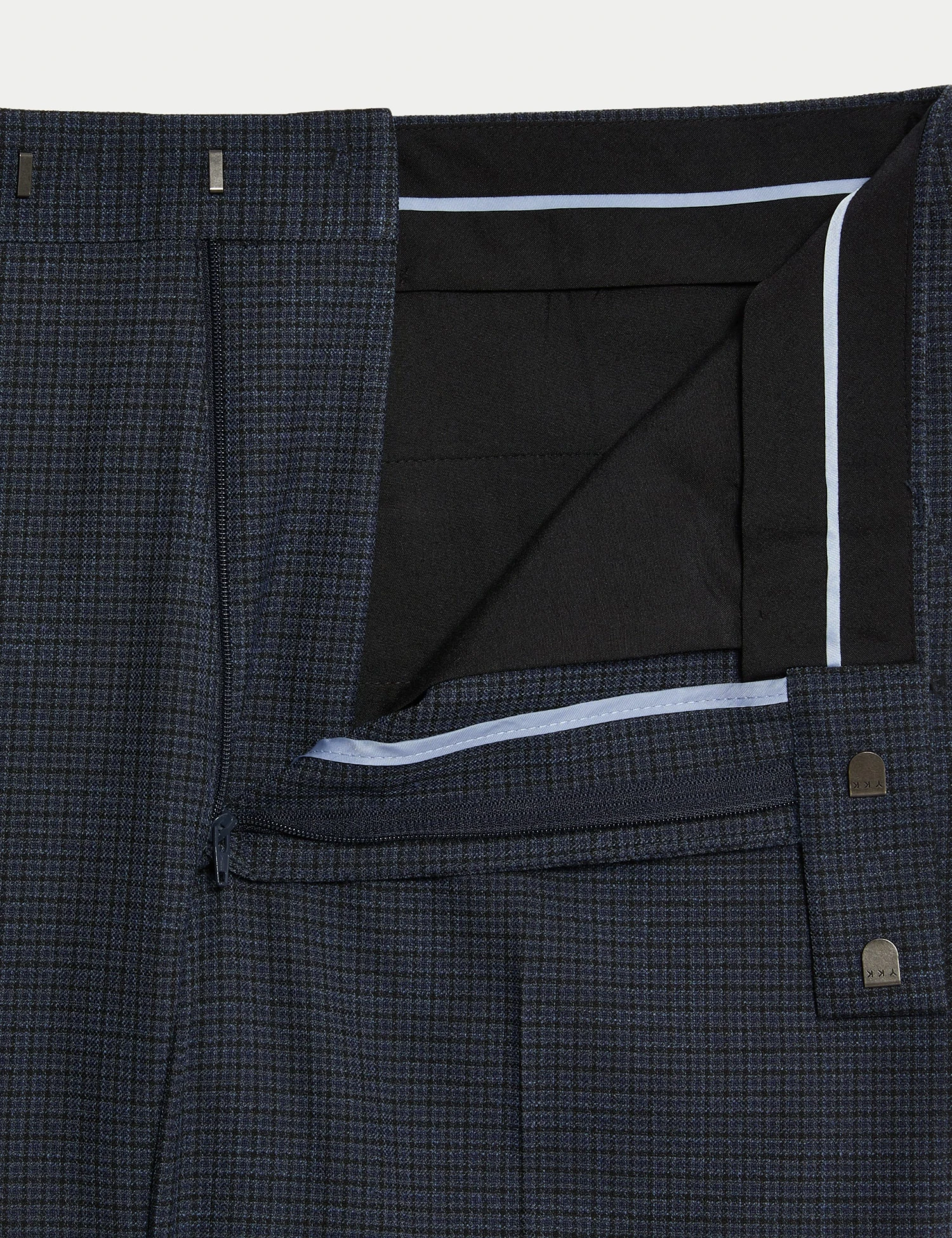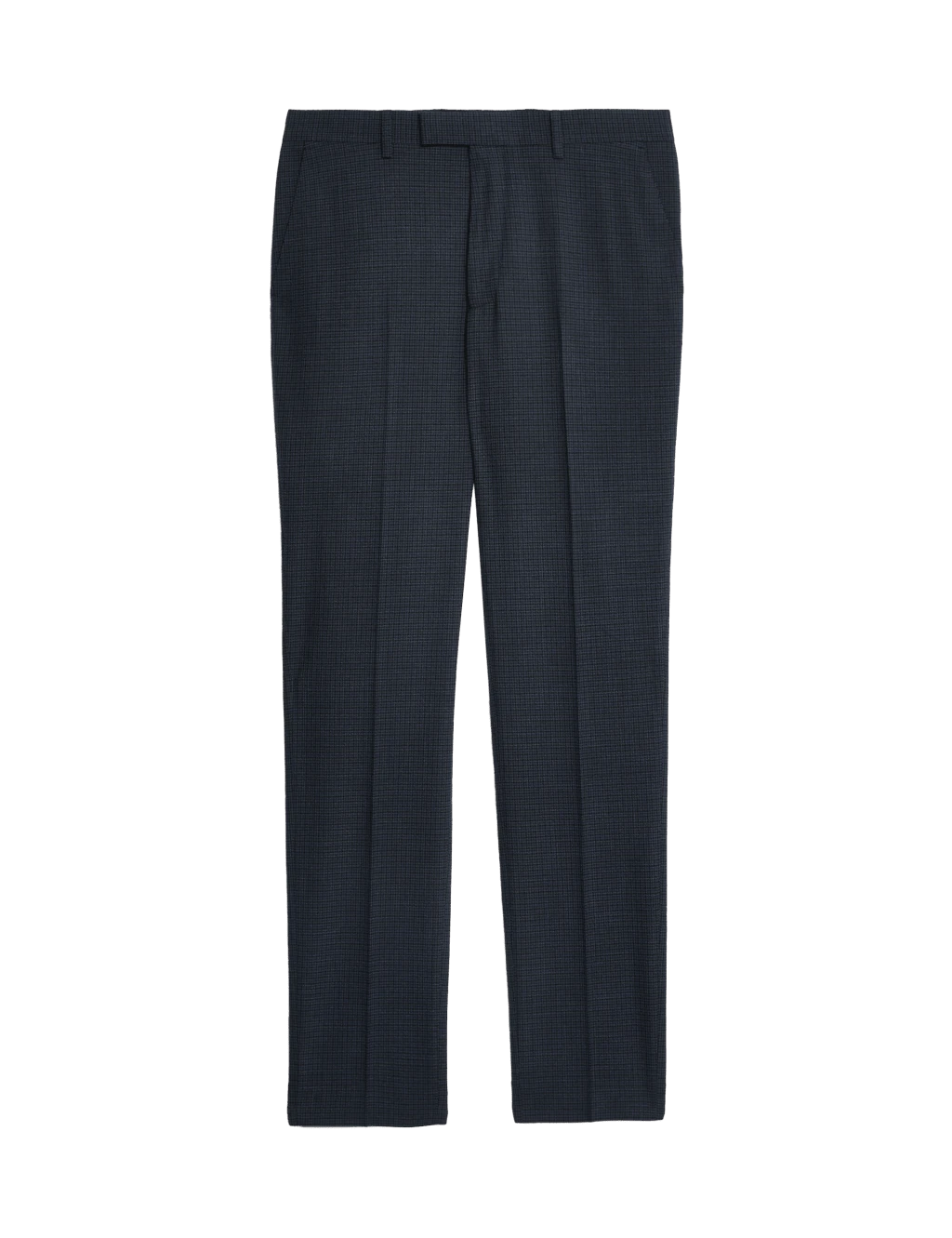 These suit trousers feature a classic check pattern for a timeless look. They’re made to a skinny fit from fabric with added stretch for comfort and flexibility. A flat front gives them a contemporary feel, while the hook bar and zip fastening ensures a neat finish. M&S Collection: easy-to-wear wardrobe staples that combine classic and contemporary styles.