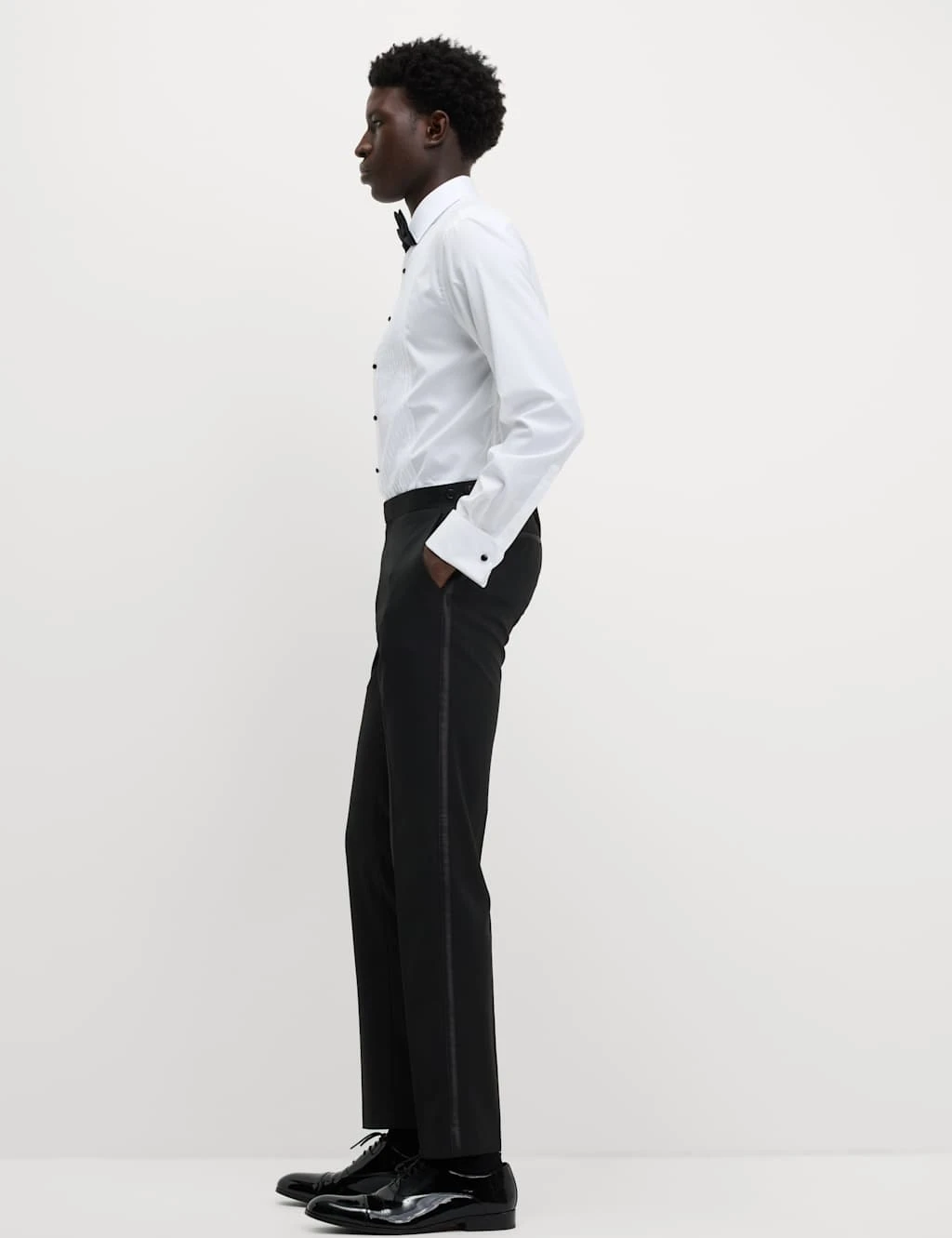 Refresh your evening-wear collection with these flat-fronted tuxedo trousers. They’re made in a contemporary skinny fit with added stretch for comfort. Side pockets add practicality, while the hook bar and zip closure provides a neat finish. M&S Collection: easy-to-wear wardrobe staples that combine classic and contemporary styles.