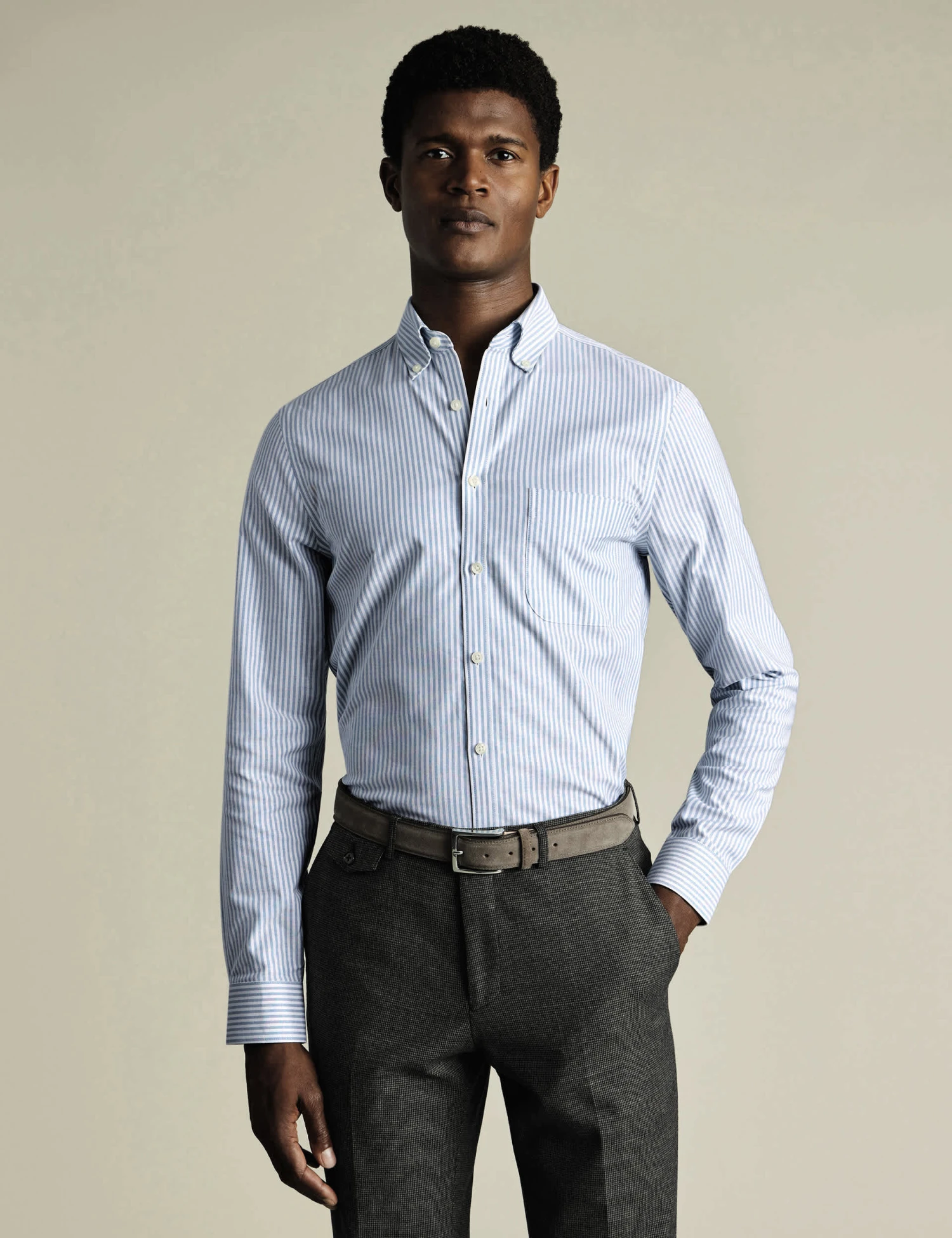 For a comfortable addition to your collection, choose this Oxford shirt by Charles Tyrwhitt – crafted from breathable cotton-rich material. It comes in a modern slim fit, with an all-over striped design to provide a refined look. A button-down collar gives a neat touch, while the single-button cuffs complete the piece.