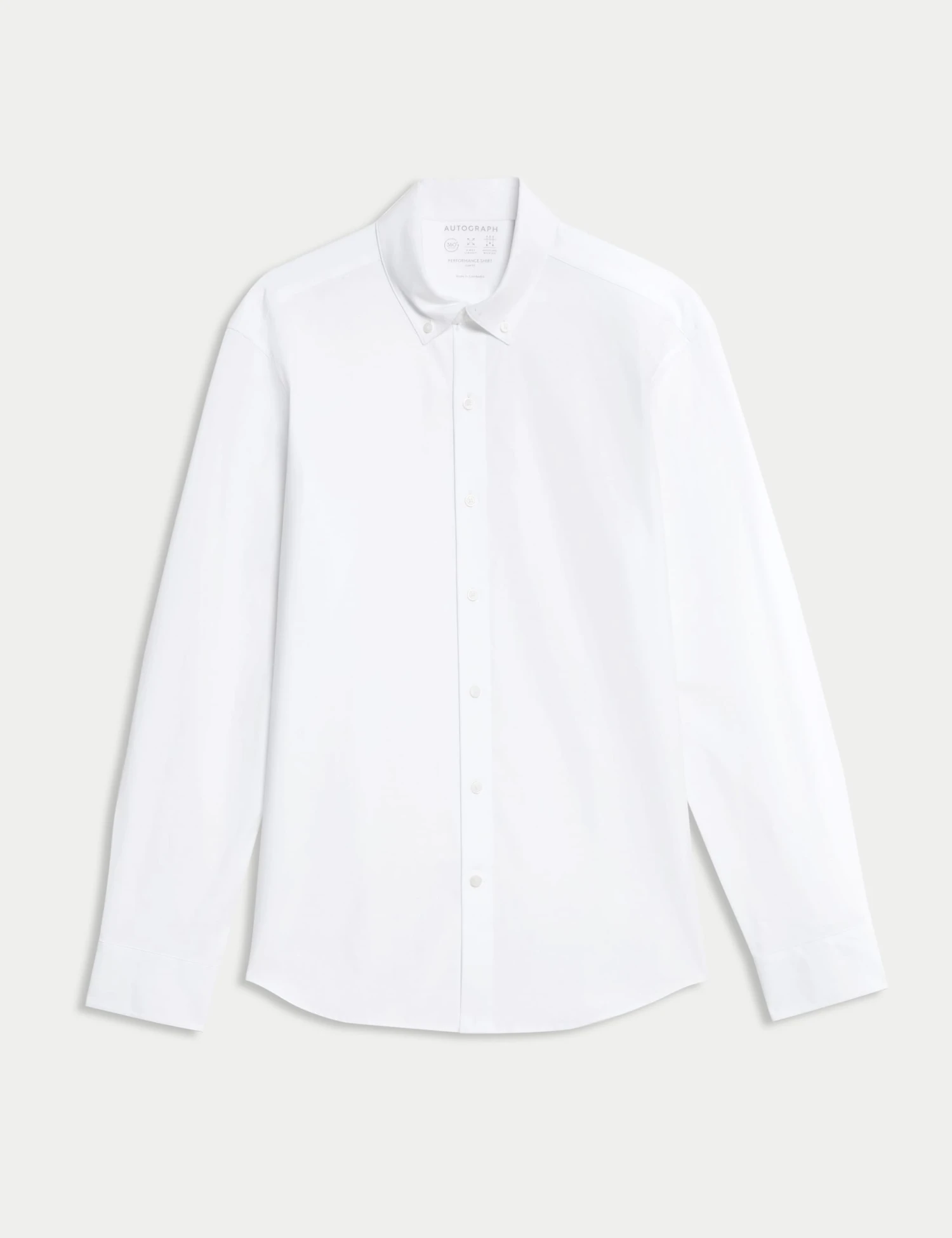 Made from a cotton-blend fabric with added stretch. This shirt from our Autograph collection combines style with practical comfort. The sleek slim fit creates a contemporary silhouette, while the button-down collar and neat button fastening offer classic styling. With 360 Flex™ technology, the fabric moves with you, providing great freedom of movement. The moisture-wicking technology keeps you fresh for all-day comfort and the easy-iron finish ensures this shirt looks crisp with minimal effort.Autograph: premium investment pieces featuring contemporary cuts and refined finishing touches.