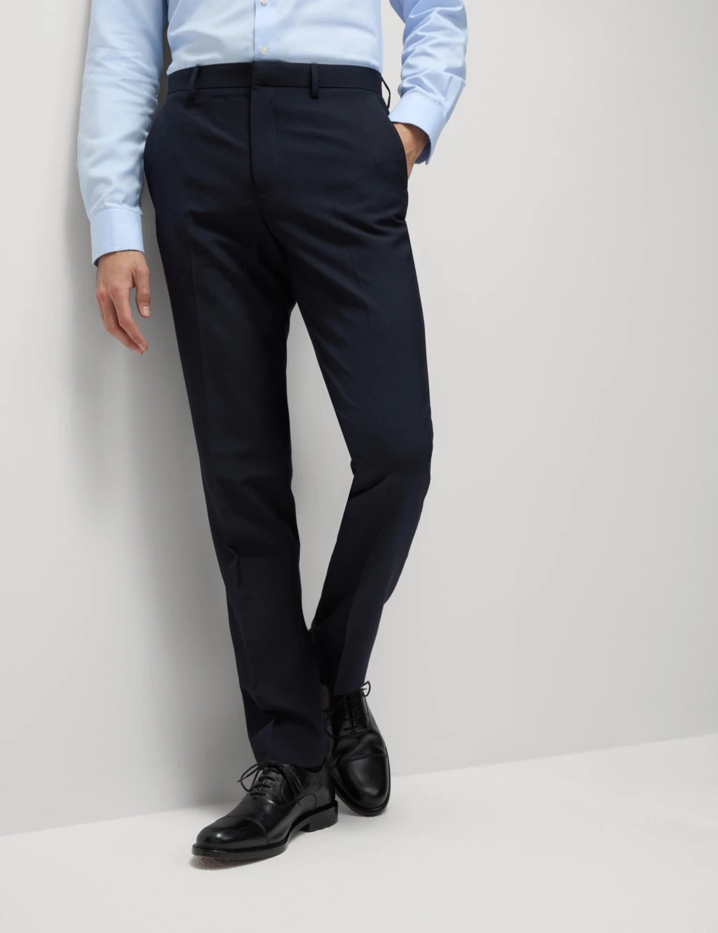 Upgrade your smartwear selection with these neatly cut suit trousers. They’re made in a slim fit for a contemporary look, with a flat front and a secure hook bar and zip fastening. Pockets at the hips provide a handy spot to store your essentials, while the fabric is machine washable for easy care.M&S Collection: easy-to-wear wardrobe staples that combine classic and contemporary styles.