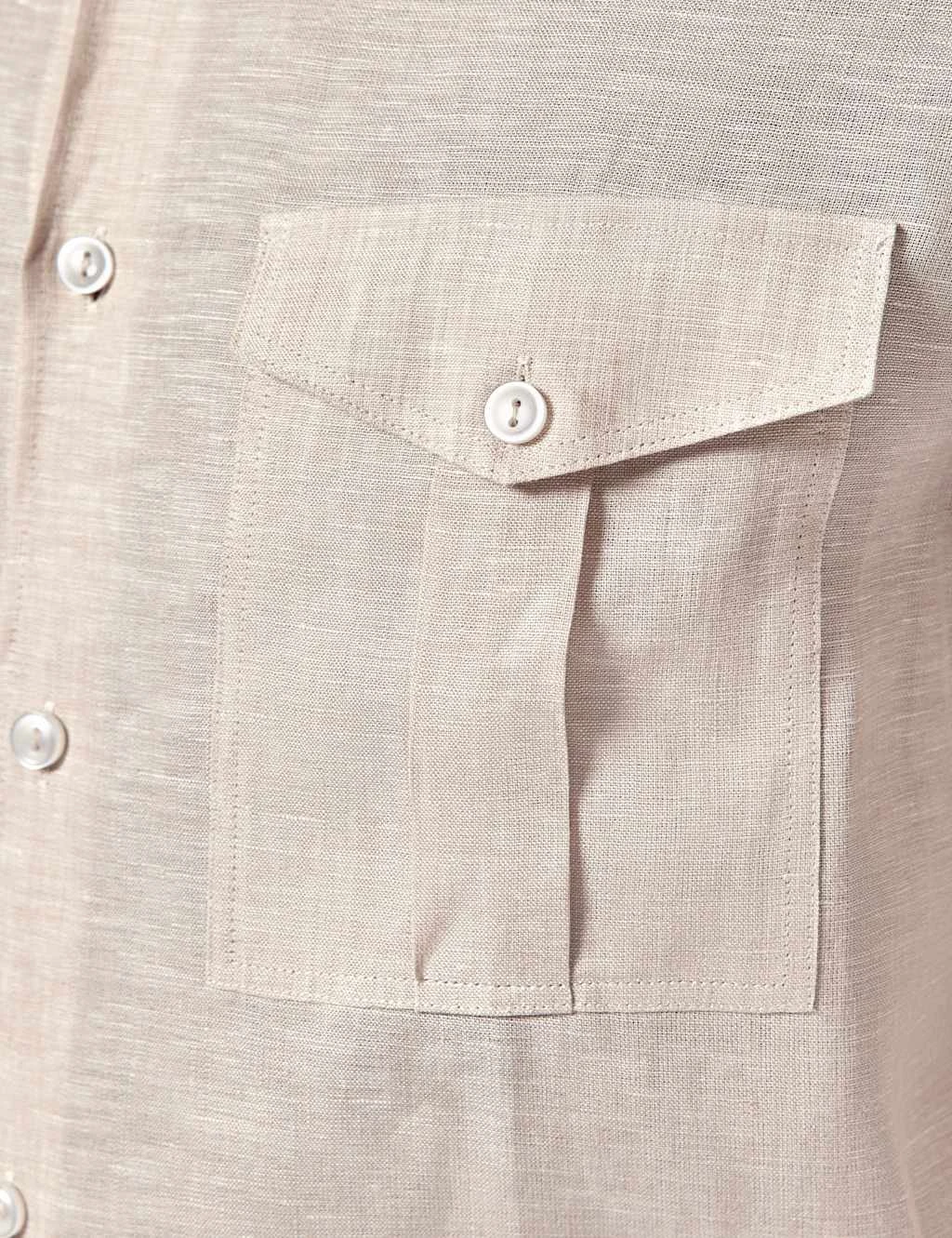 Tailored from lightweight and breathable pure linen, this utility shirt from Hawes & Curtis brings sleek style to smart-casual occasions. The relaxed slim fit creates a sleek silhouette while the classic collar maintains a classic appeal. Safari-style double patch pockets on the chest add a distinctive utility-inspired element, complemented by the textured finish of the fabric. Practical Swiss tabs on the sleeves allow you to easily roll and secure them when the temperature rises.
