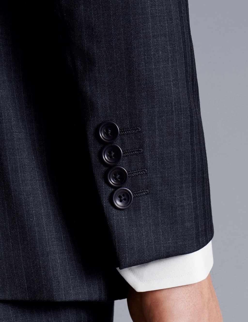 Upgrade your formal attire with this striped, pure wool suit jacket by Charles Tyrwhitt. This single-breasted piece is cut to a slim fit with streamlined proportions and notch lapels for a modern look. The silky lining provides comfort and breathability. Complete with three front pockets, this jacket seamlessly combines style and functionality.