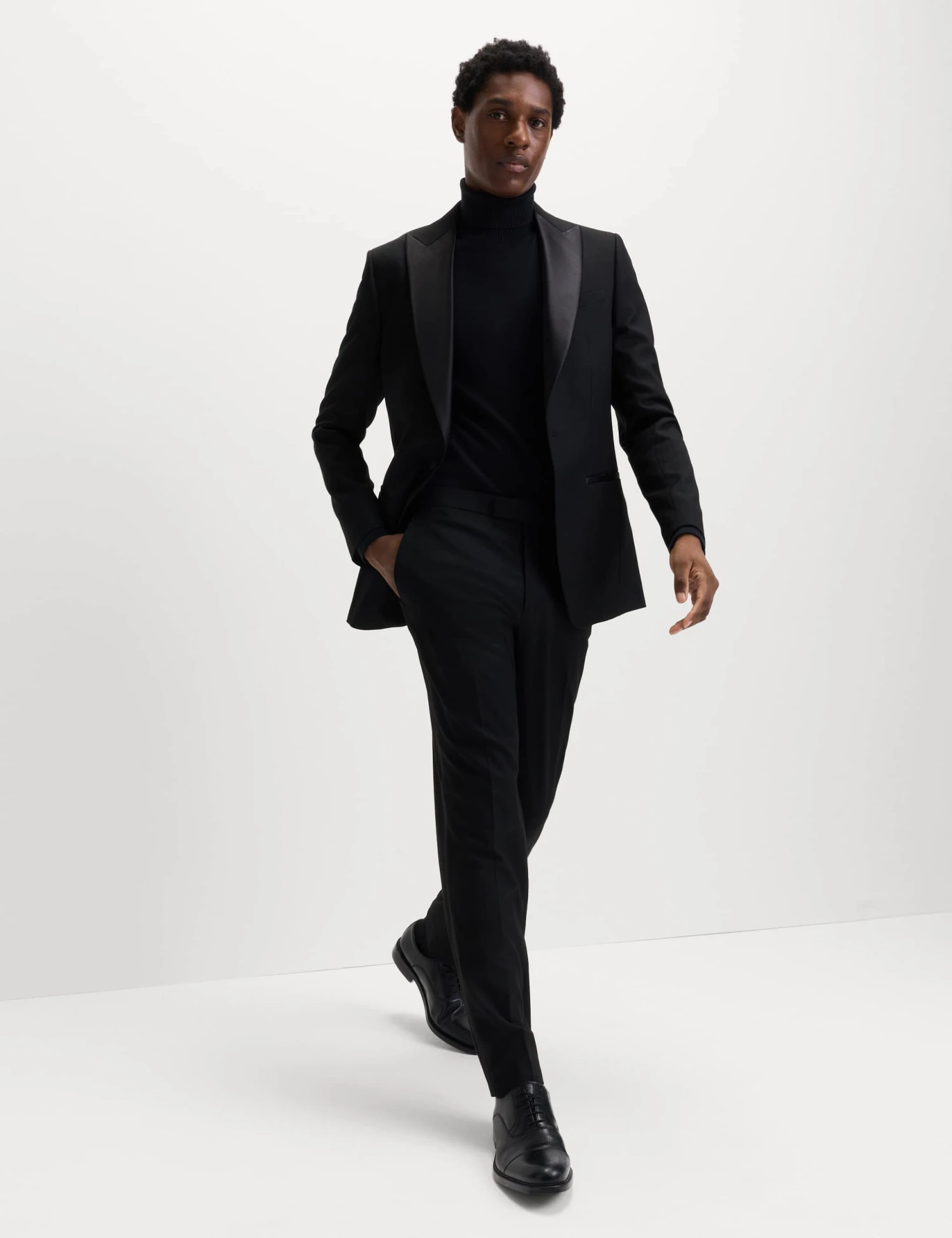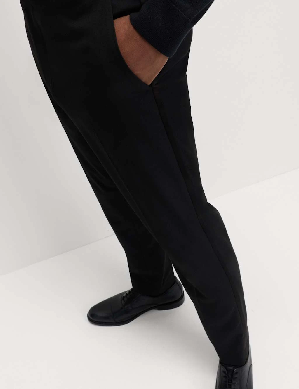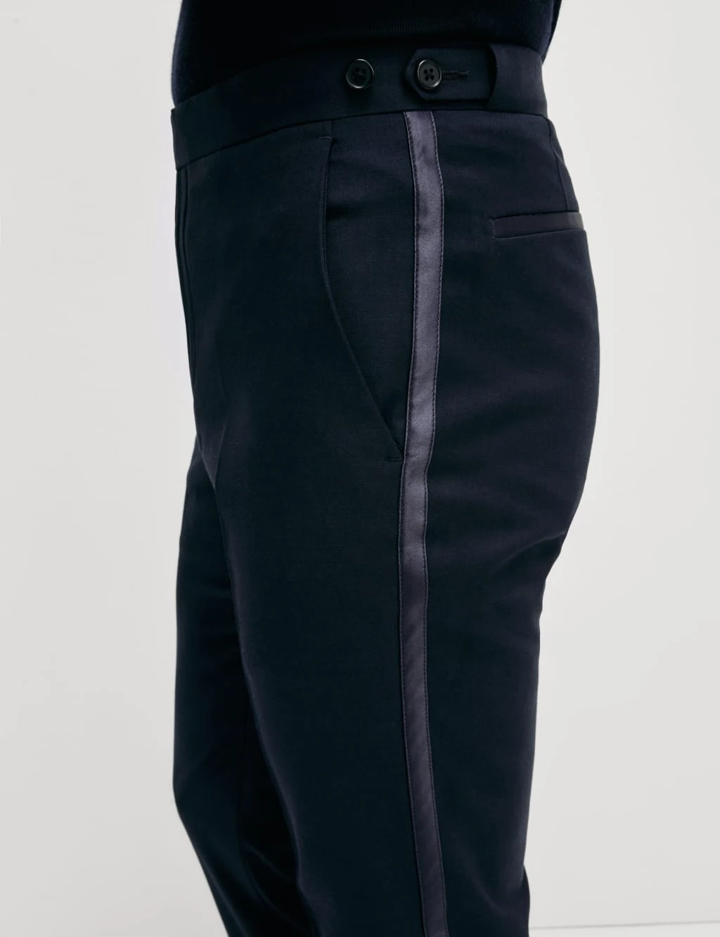 Complete your tux in sleek style with these smart tuxedo trousers. Their slim fit and flat front offer a contemporary evening look, while added stretch gives the fabric a freeing, flexible quality. The waistband is complete with luxe satin buttons as well as a zip fastening and two hooks for adjustable comfort. M&S Collection: easy-to-wear wardrobe staples that combine classic and contemporary styles.