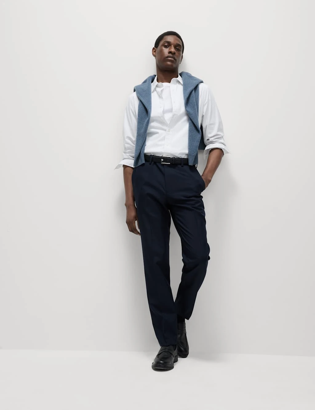 Give your formal outfit a sleek look with these smart trousers. They’re cut to our slim fit, with an active waistband that moves with you. Crease-resistant technology keeps them looking sharp, while heat-fused Buttonsafe™ buttons won’t fall off. They’re fastened with a hook and bar. Made with recycled polyester.