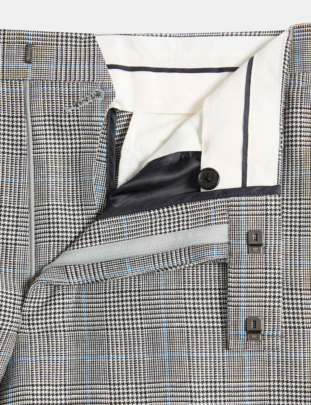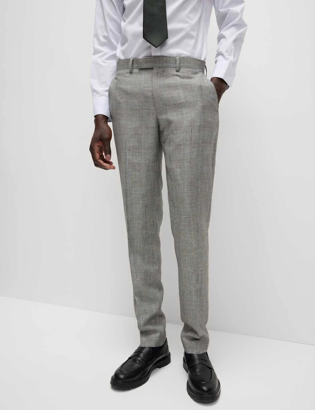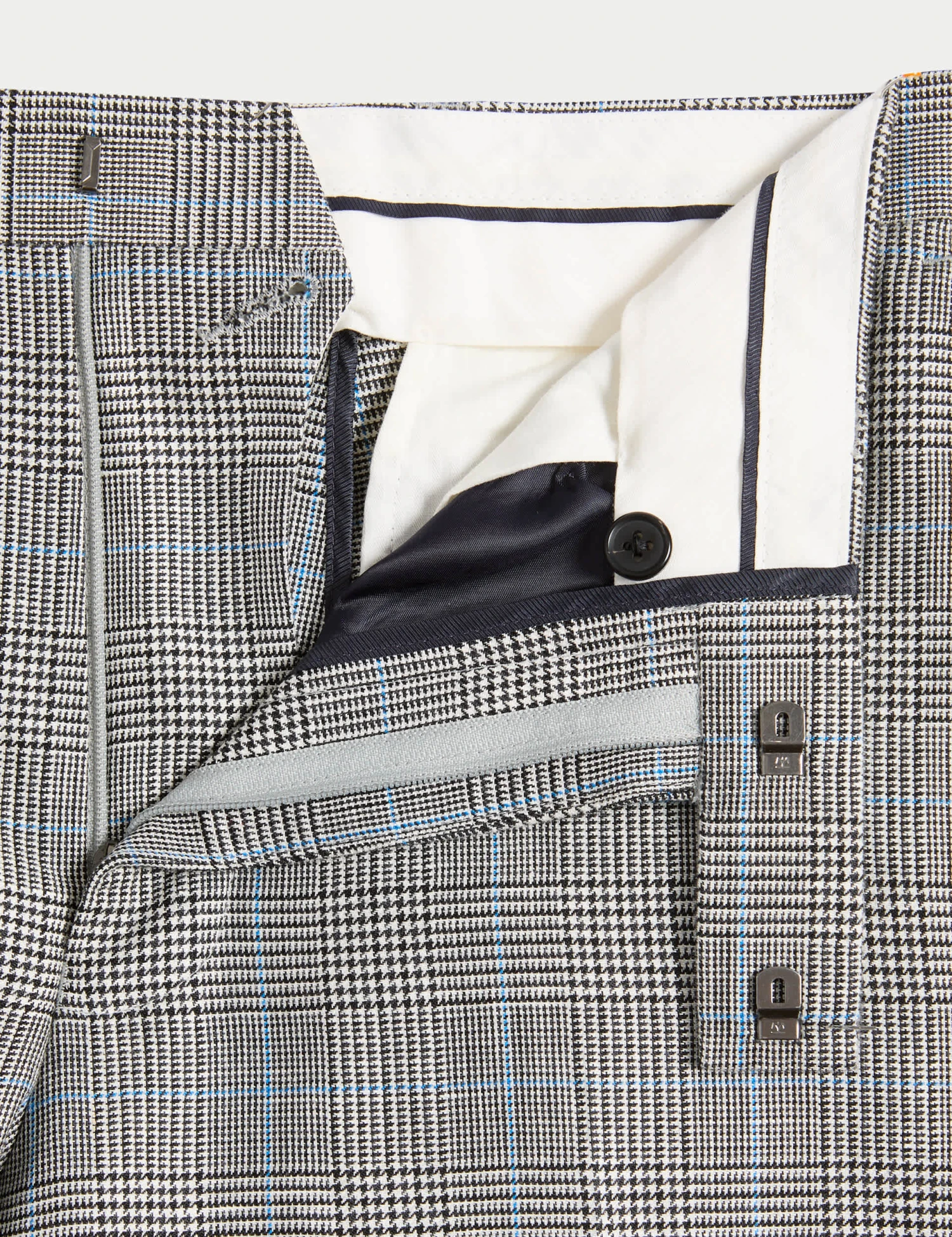 These wool-rich suit trousers are woven with linen for a crisp, cool feel. They’re made in a contemporary slim fit, with a neat flat front. The understated Prince of Wales check is complemented by a textured birdseye weave. Kick tape detailing at the hems helps to prevent wear and tear. M&S Sartorial: Luxury tailoring inspired by Savile Row; fusing exceptional craftsmanship with superior fabrics.