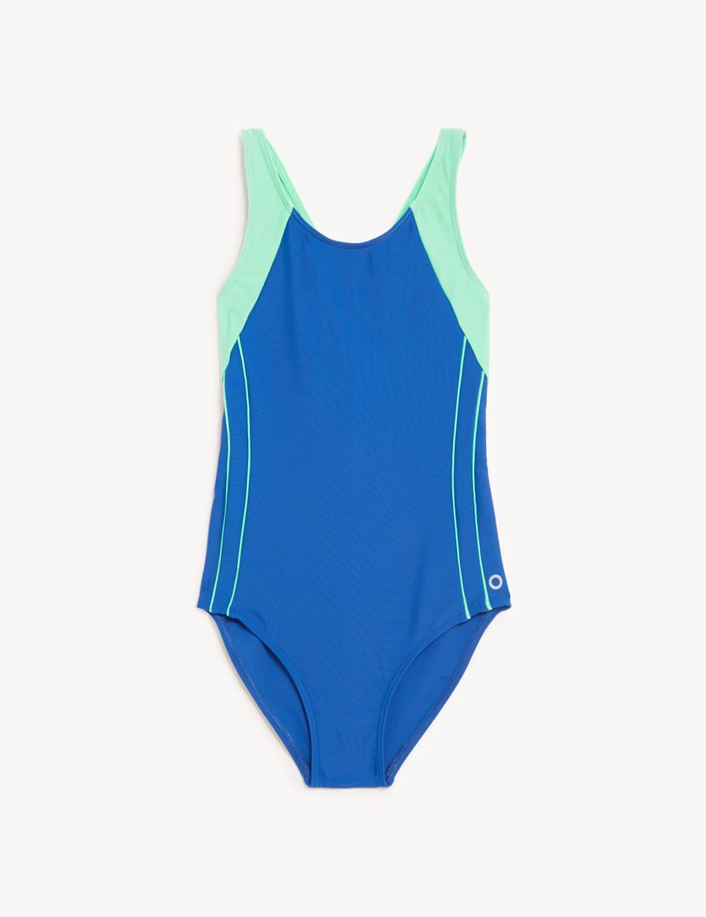 They’ll be prepared for the pool in this sporty swimsuit from our Goodmove collection. Cut in a regular fit with crossed straps at the back. Durable chlorine-resistant fabric and comfy added stretch. Sun Smart UPF50+ technology helps protect against harmful UV rays. Endorsed by the British Skin Foundation.