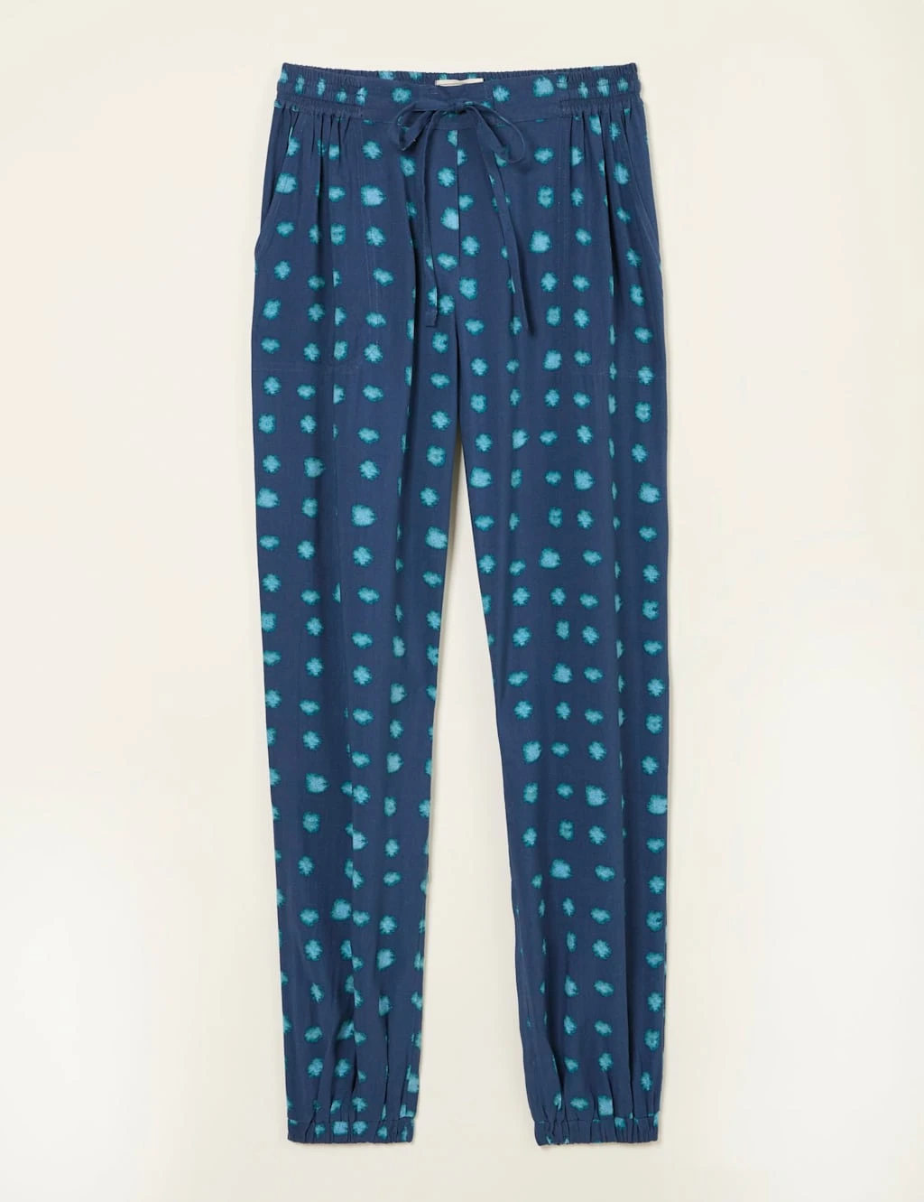 Crafted from lightweight fabric, these FatFace joggers are a comfy choice. The refined cuffed design features a mid-rise waist with an adjustable drawstring and a touch of elastic for easy movement. An all-over spot print creates a playful aesthetic. They’re complete with two side pockets to provide a practical finish.