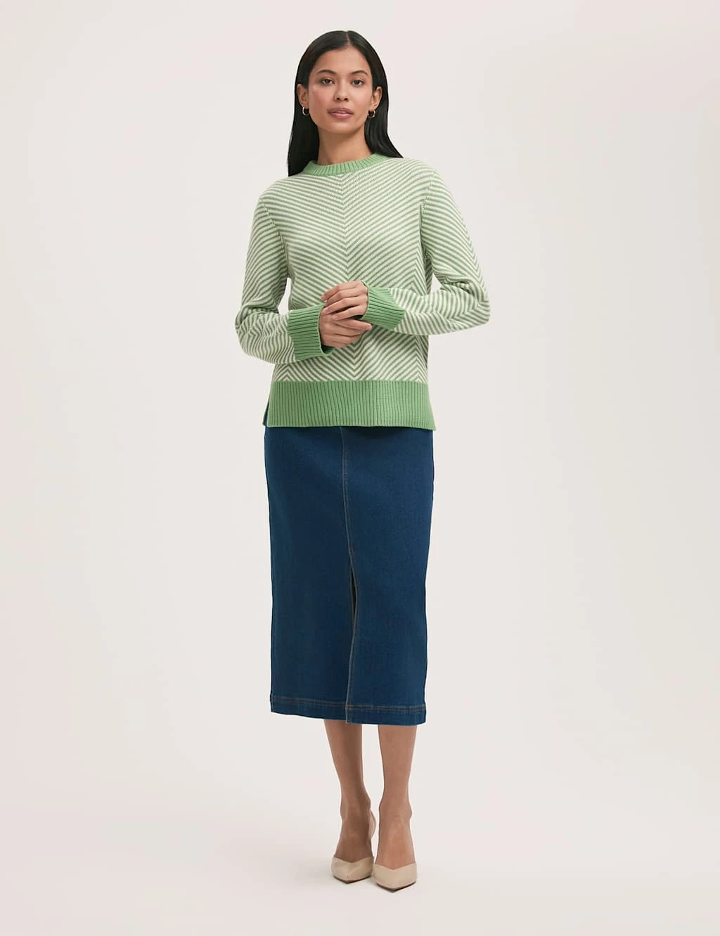 With its statement chevron stripes, this cotton-rich jumper from Finery London is a striking addition to your knitwear collection. It’s knitted in a comfy regular fit, with a neat crew neckline. Ribbed trims at the cuffs and waistband add smart detail, while the hem is split at the sides for easy movement.
