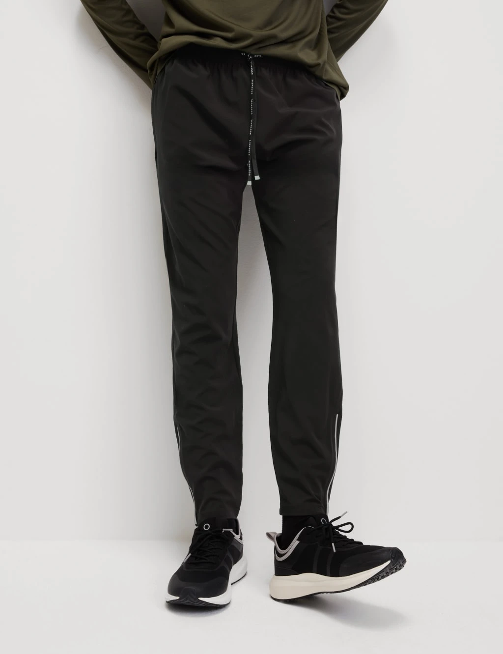 Layer up for cool weather training sessions in these joggers from our Goodmove collection. They’re made in a regular fit, with four-way stretch for easy movement and an adjustable drawstring at the comfy elasticated waist. The smooth fabric is also breathable, moisture-wicking and quick-drying to help you stay fresh for longer. Zipped ankles let you change the joggers quickly without removing footwear. Plus, reflective trims increase your visibility in the dark.
