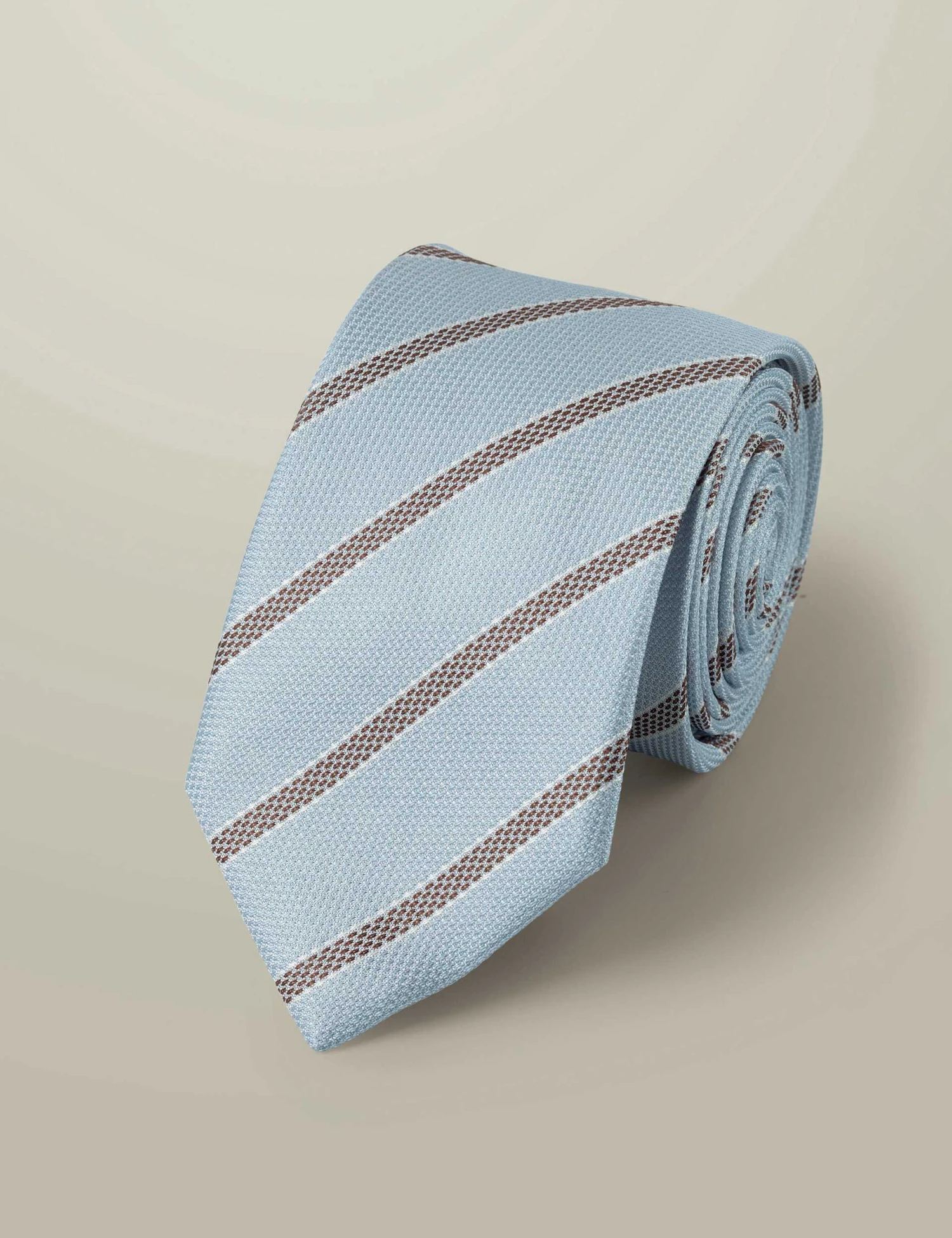 This woven striped tie by Charles Tyrwhitt is crafted from pure silk for a luxurious look. The hand-finished piece features a self-fabric keeper loop to hold the tail neatly in place. There’s also a clever recovery loop to pull the tie back in shape after washing or wear.