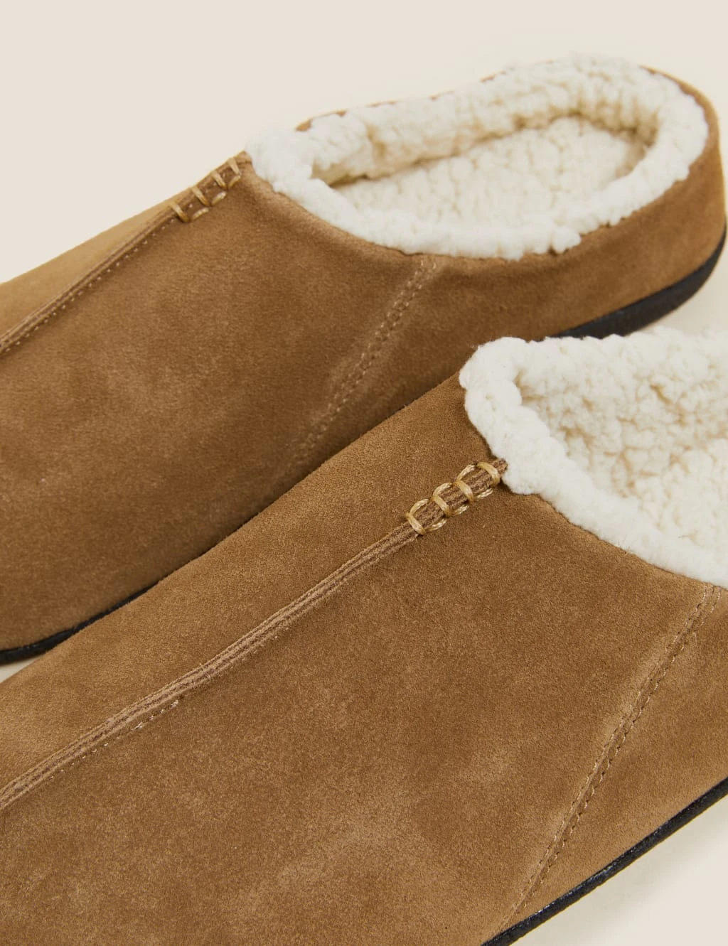 Pad about in comfort in these suede mule slippers. Cosy fleece lining keeps your toes warm. Made with responsibly sourced leather. M&S Collection: easy-to-wear wardrobe staples that combine classic and contemporary styles.