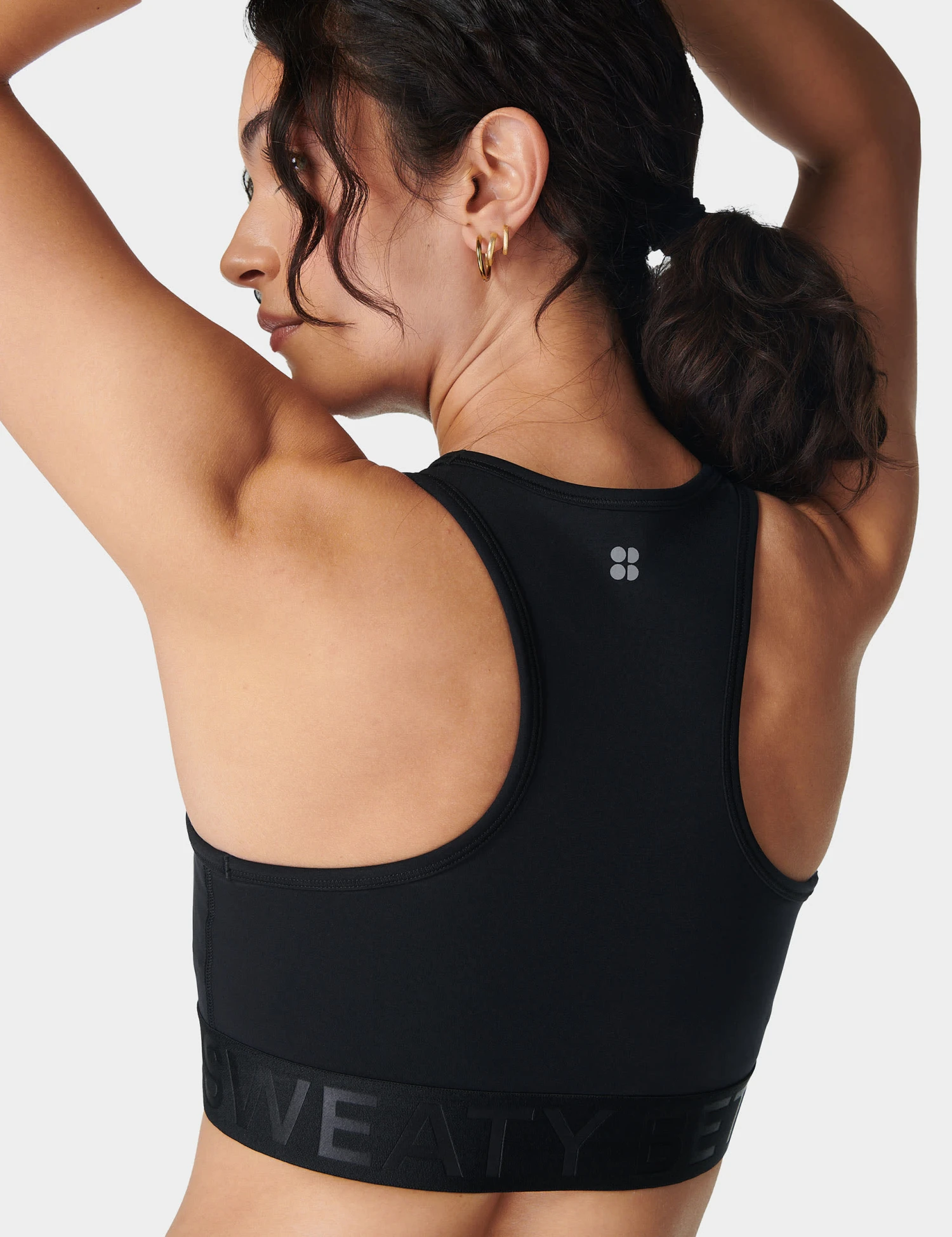 Feel supported through every workout with the power racerback crop top from Sweaty Betty. It features a built-in sports bra with removable padding and medium-impact support, so it’s perfect for everything from gym sessions to HIIT classes. The brand’s signature Power fabric provides sweat-wicking comfort and a breathable feel. A tonal logo underband creates a premium sporty finish.