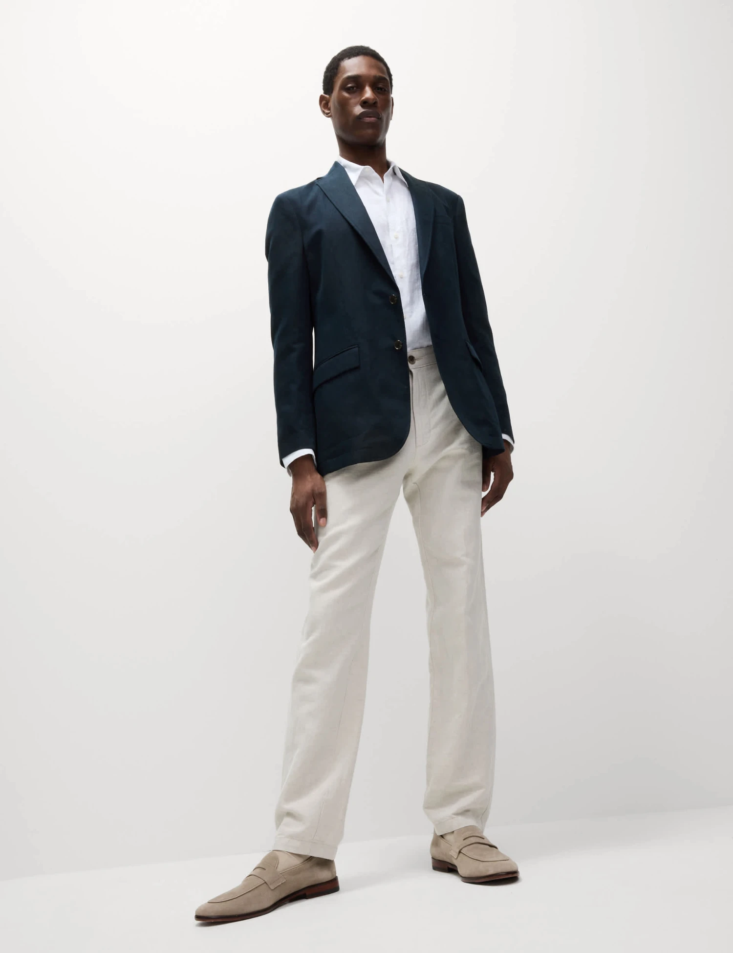 58% cotton, 42% linen (exclusive of trimmings) , Jacket lining – 93% polyester, 7% cotton