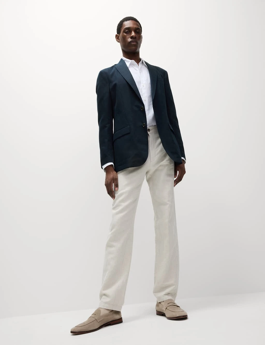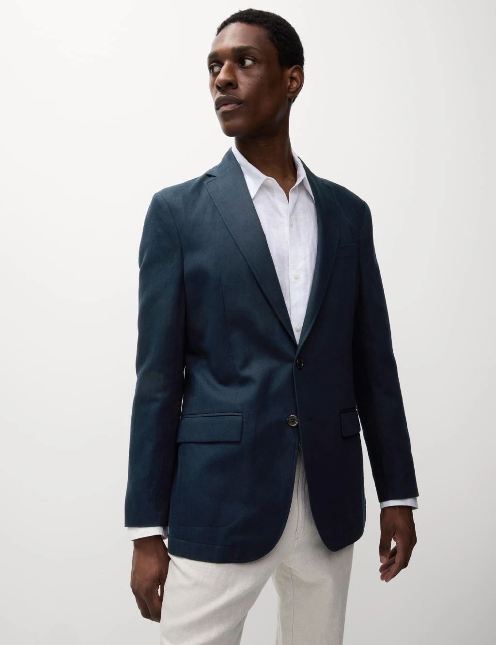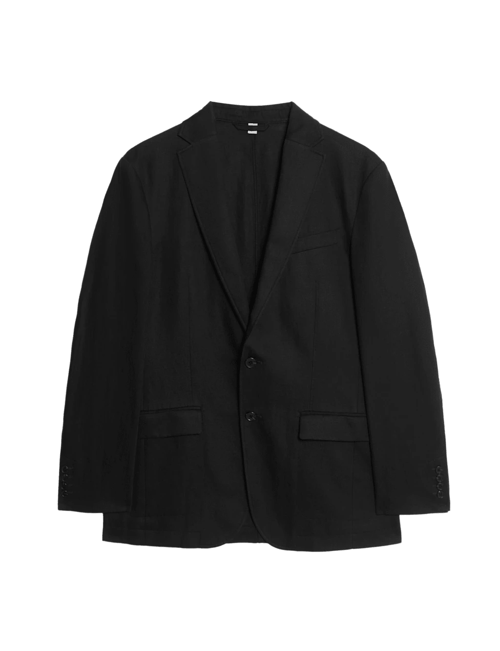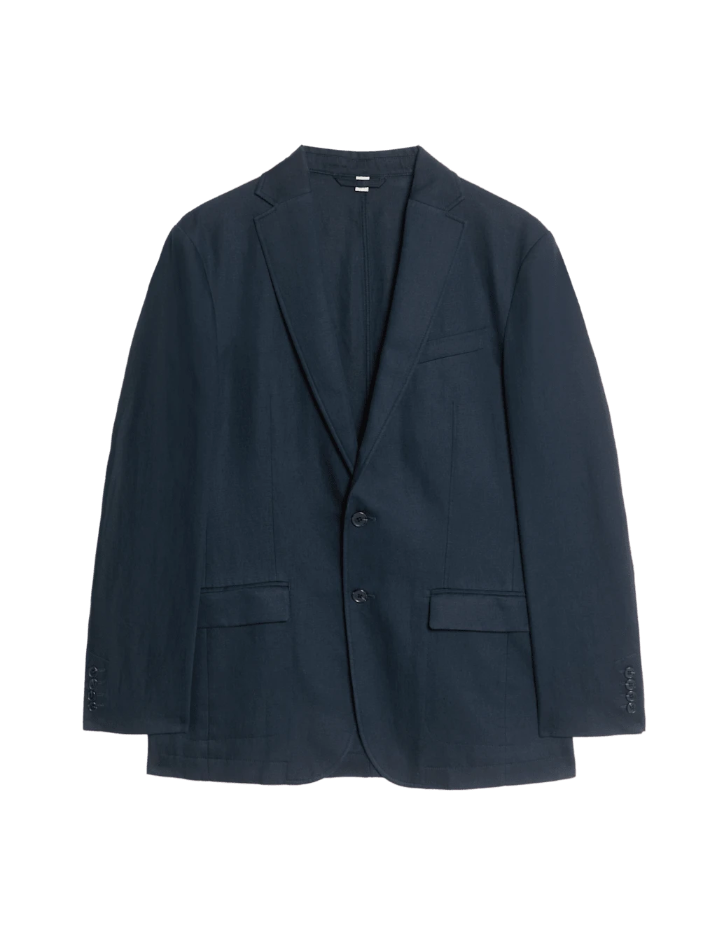 This cotton-rich blazer is garment-washed for a laundered look with a soft shoulder construction for a relaxed look. It’s made to a tailored fit, with a neat single-breasted front and two-button fastening. Notch lapels add a refined touch, while flap pockets keep your essentials handy. The piece is lined for comfort.M&S Collection: easy-to-wear wardrobe staples that combine classic and contemporary styles.