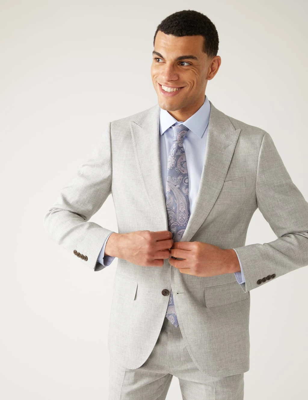This linen-rich jacket is perfect for your next summer wedding or special occasion. It’s made in a tailored fit from our Linen Miracle™ fabric with crease-resistant technology, which reduces creasing during wear so you can stay looking smart. This premium material is woven at the Italian Nova Fides mill and also contains added stretch to allow you to move with ease. The single breasted design offers a streamlined look, while the smooth lining provides extra comfort. Our easy-to-iron finish means all that’s needed is a quick press.