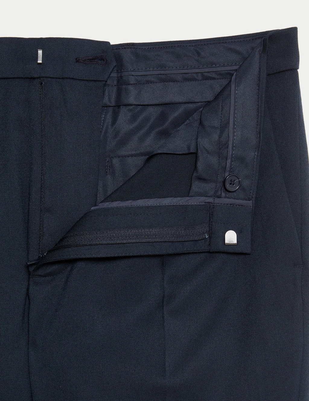 The single front pleat lends these smart trousers a crisp finish. They’re crafted to a sleek tailored fit, with added stretch for easy movement. A neat hook, bar and zip fastening ensures a secure wear, while kick tape detailing helps to prevent scuffs at the hems. M&S Collection: easy-to-wear wardrobe staples that combine classic and contemporary styles.