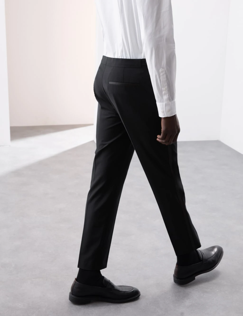 Go for a sleek evening look with these wool-blend tuxedo trousers from our Autograph range. They’re made to a tailored fit and feature a 360° flexible waistband and added stretch for easy movement. The fabric is shower-resistant and crease-resistant, so you can stay looking smart. Two side pockets add a handy touch, while a hook bar and zip fastening and a flat front complete the design. This piece is lined for a smooth drape. Autograph: premium investment pieces featuring contemporary cuts and refined finishing touches.