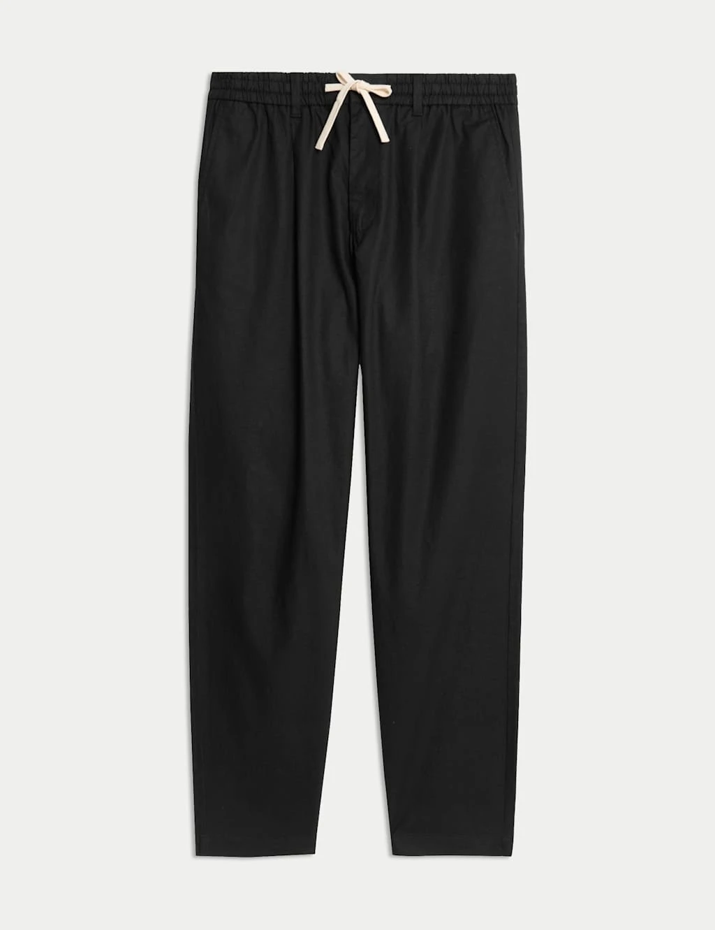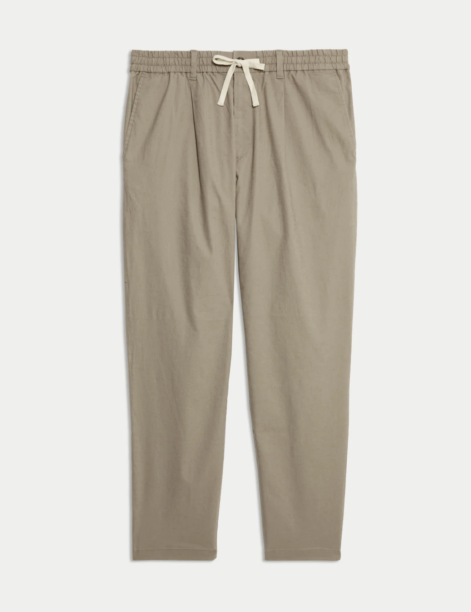These smooth, breathable linen-blend trousers are a comfy smart-casual wardrobe staple. They’re made in a sleek tailored fit. They have a crisp single pleat design, and an elasticated waist with a contrast drawstring fastening keeps them feeling comfortable. Added stretch in the fabric offers day-long freedom of movement. M&S Collection: easy-to-wear wardrobe staples that combine classic and contemporary styles.
