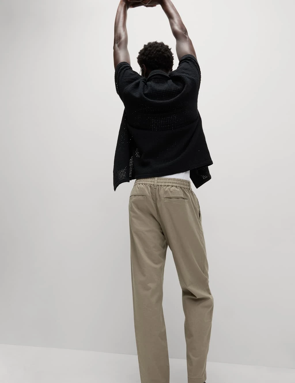 53% linen, 45% cotton, 2% elastane (exclusive of trimmings), pocketing (pocket fabric composition) – 80% polyester, 20% cotton