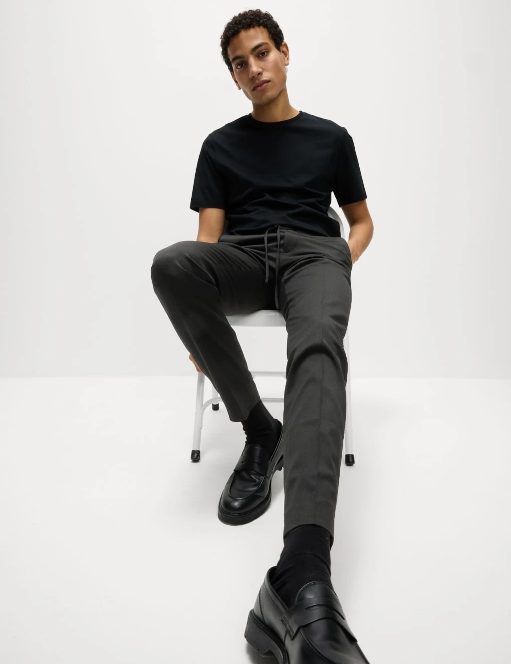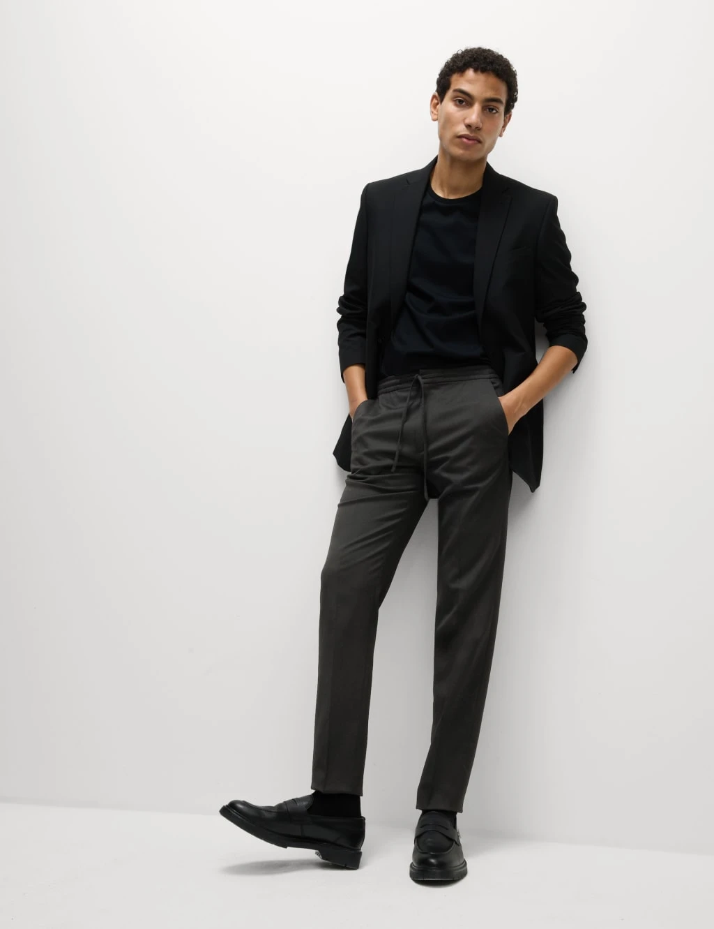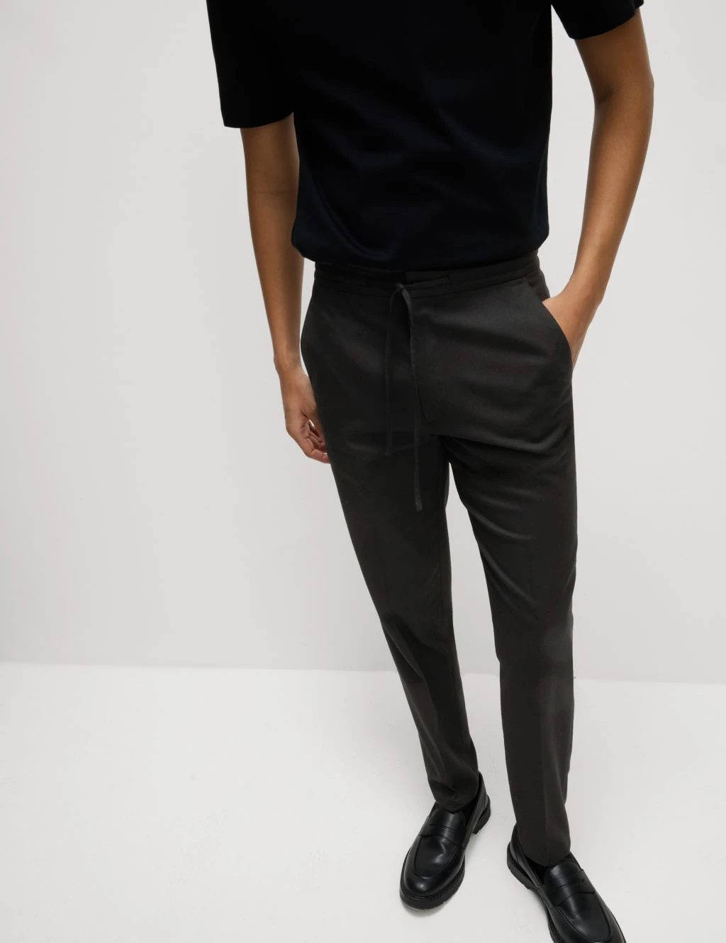 These trousers blend a smart silhouette with easy comfort. They’re cut to a tapered fit, with an elasticated waist for a flexible feel. Side pockets add a practical touch, while centre-front pressed creases ensure a sharp, tailored look. Kick tape at the hem.M&S Collection: easy-to-wear wardrobe staples that combine classic and contemporary styles.