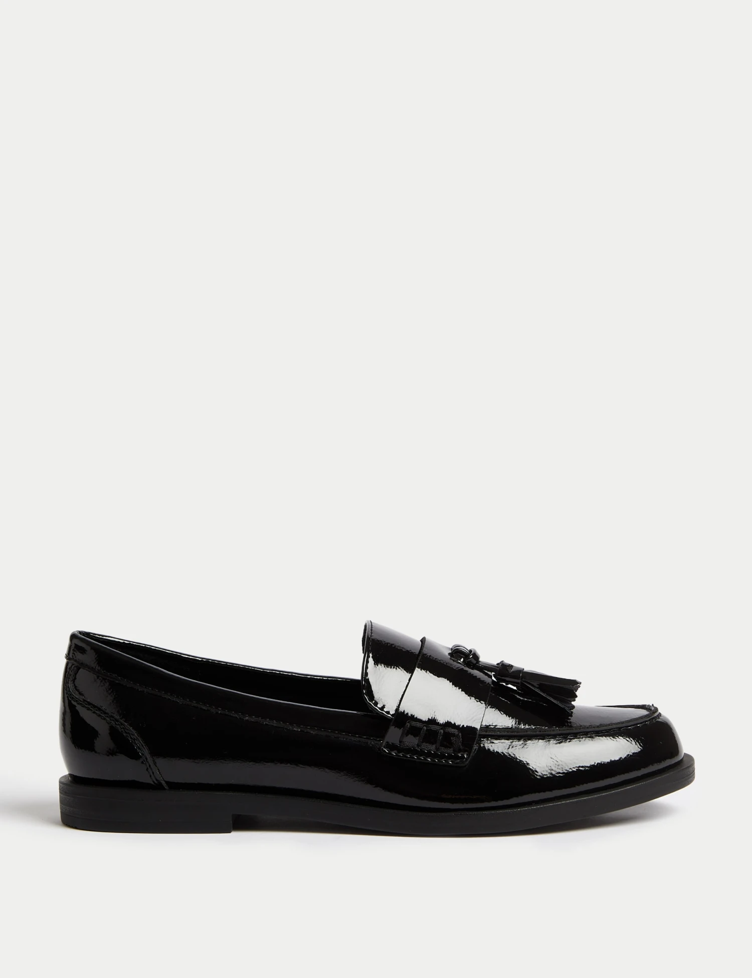 These elegant loafers are made from comfortable material for all-day wear. Easy slip-on style, with a tassel design to create an eye-catching aesthetic. Antibacterial Freshfeet™ foam padding keeps your feet free of odours. A low block heel completes the smart look. M&S Collection: easy-to-wear wardrobe staples that combine classic and contemporary styles.