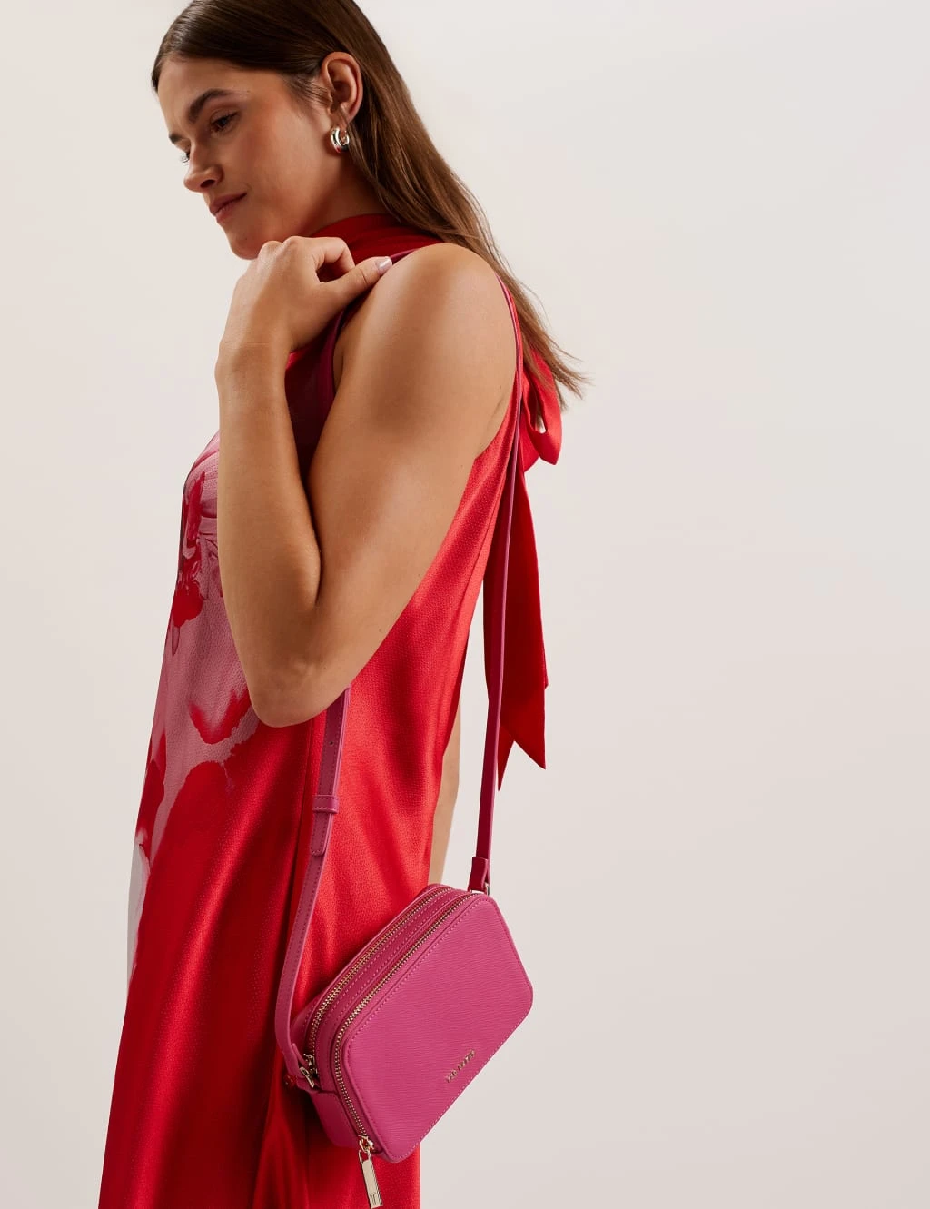 Keep your essentials close to hand with this textured cross-body bag from Ted Baker. It’s designed in a smart rectangular shape, with an adjustable strap and a secure zip fastening. The brand’s logo is embossed on the front in sleek metal for a signature touch.