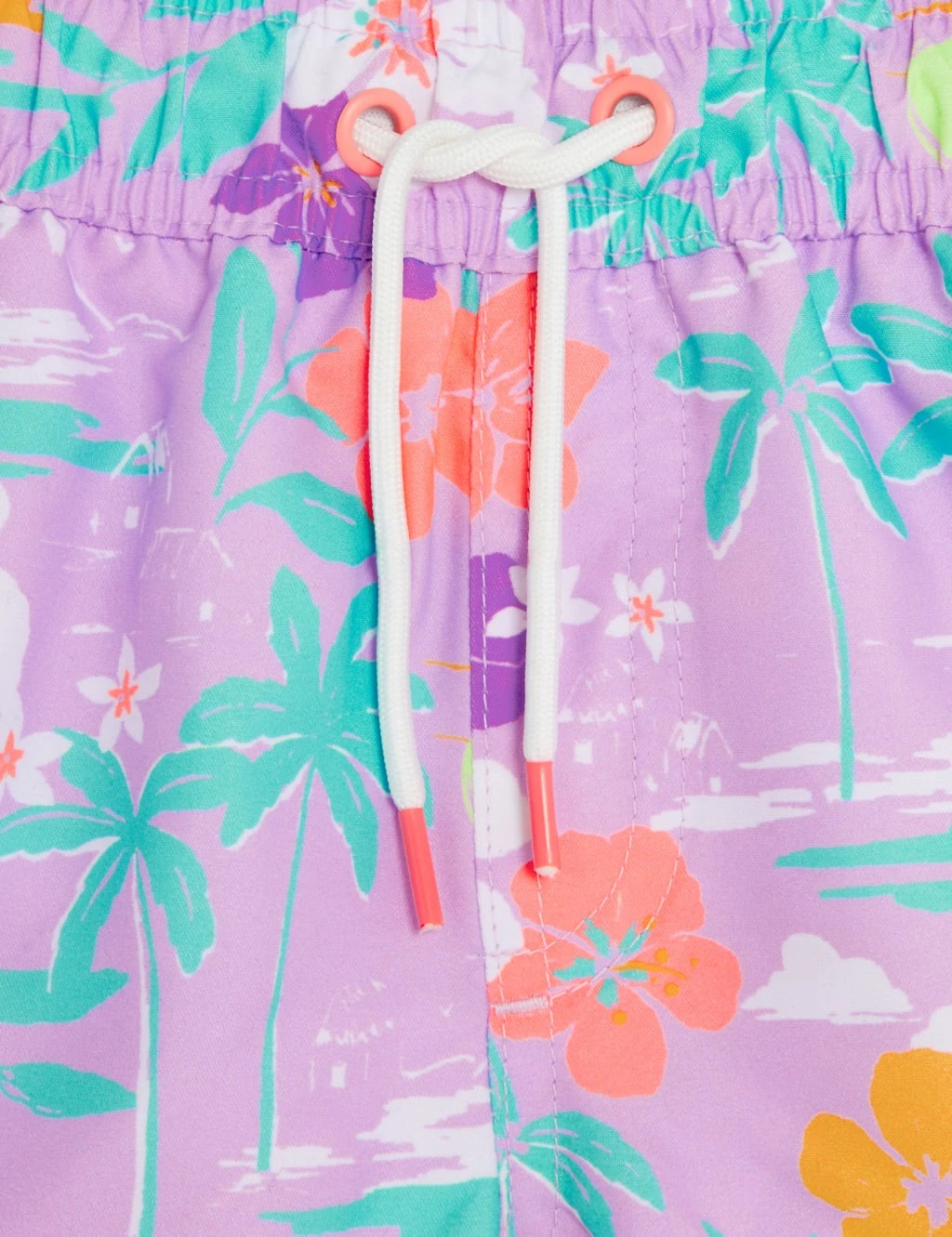 Get them ready for holiday adventures with these fun tropical print swim shorts. They’re cut in a comfy regular fit with an elasticated waistband and an adjustable drawstring tie. Crafted from lightweight fabric with UPF50+ sun protection endorsed by the British Skin Foundation to help them stay safe in the sun.