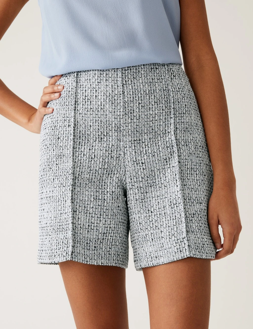 Give your looks a smart, heritage-inspired twist with these tailored shorts. They’re cut to a regular fit and sit high on the waist, with a button and zip fastening at the side. Crafted from bouclé tweed for a luxurious texture.