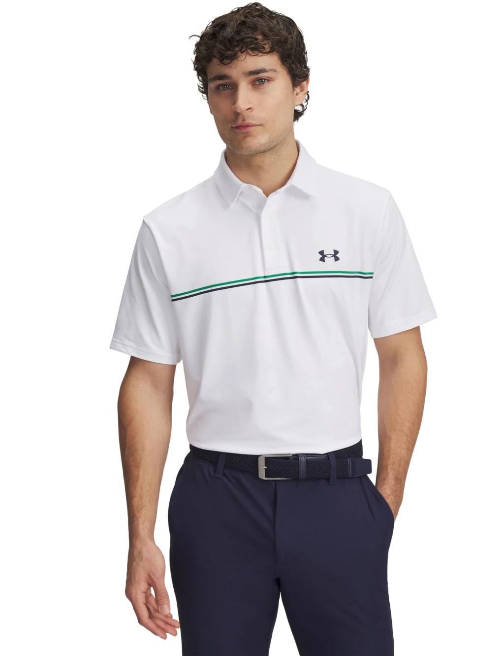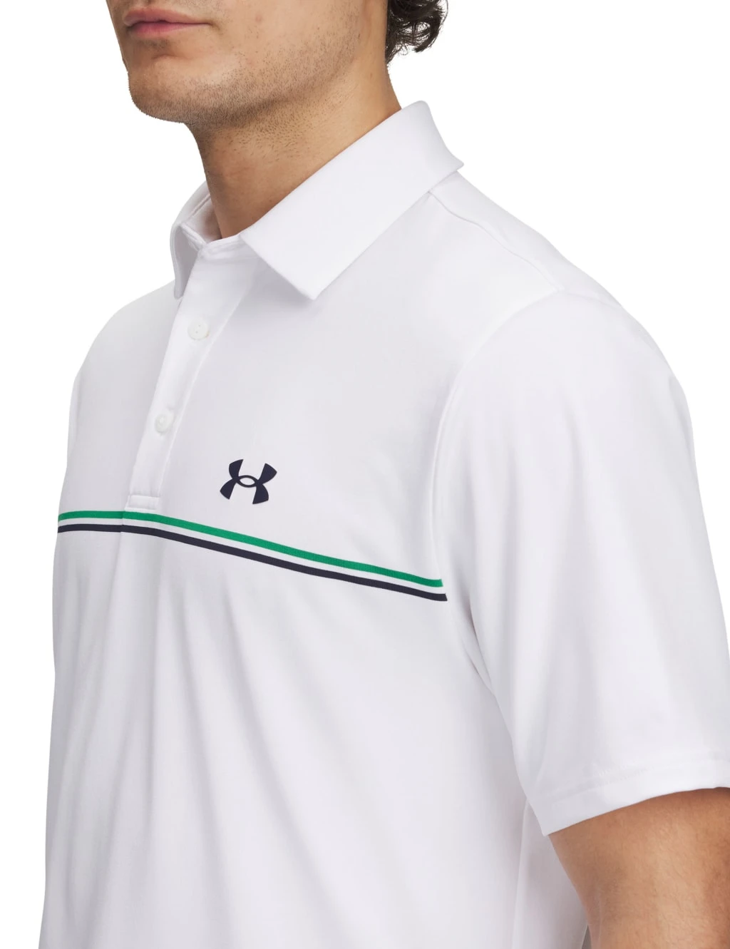 Elevate your golfing wardrobe with this polo shirt from Under Armour. It’s made in an easy relaxed fit, from breathable, moisture-wicking fabric that features four-way stretch for total ease of movement. Neat stripes on the chest, a smart collar and a button placket ensure a polished look on the green.