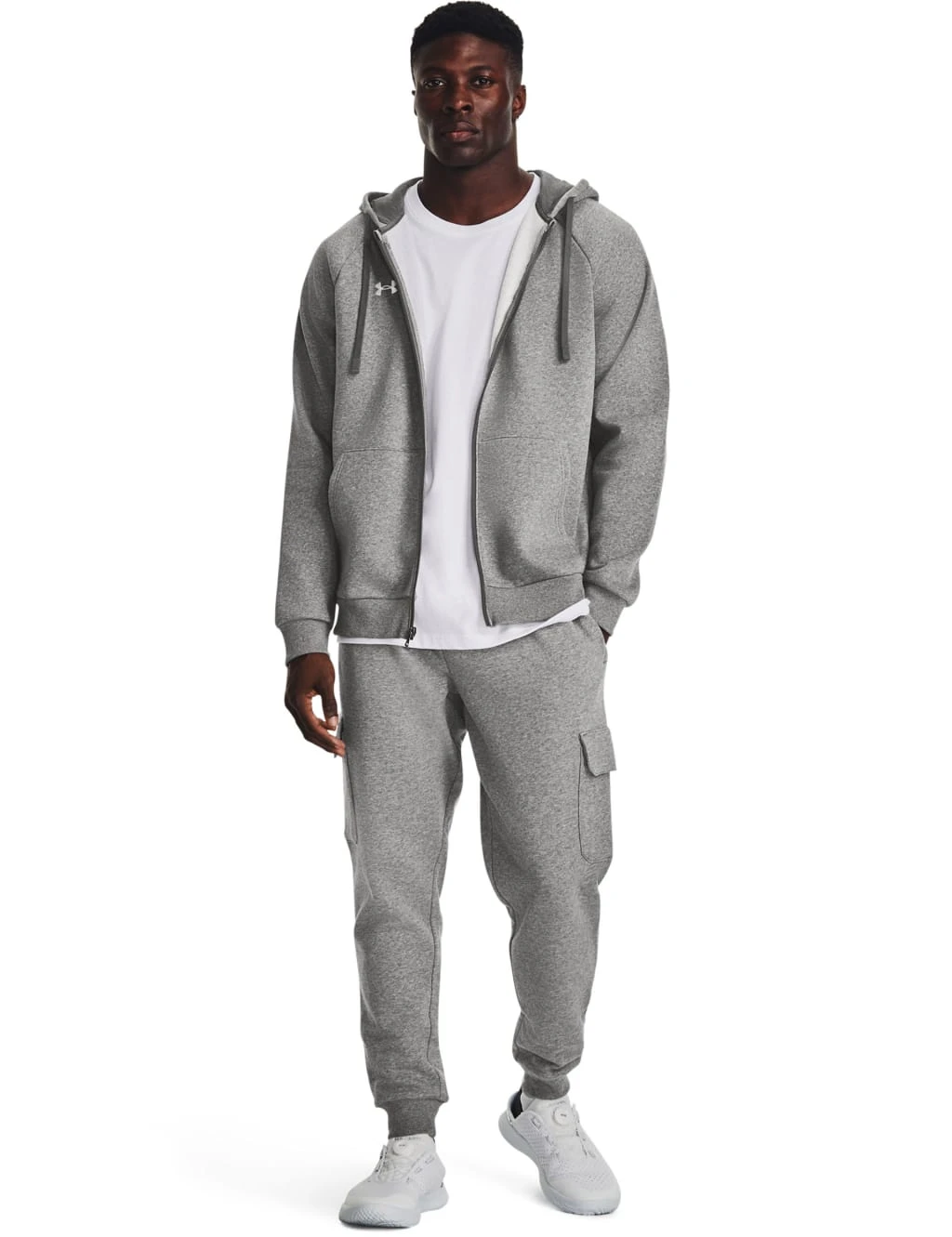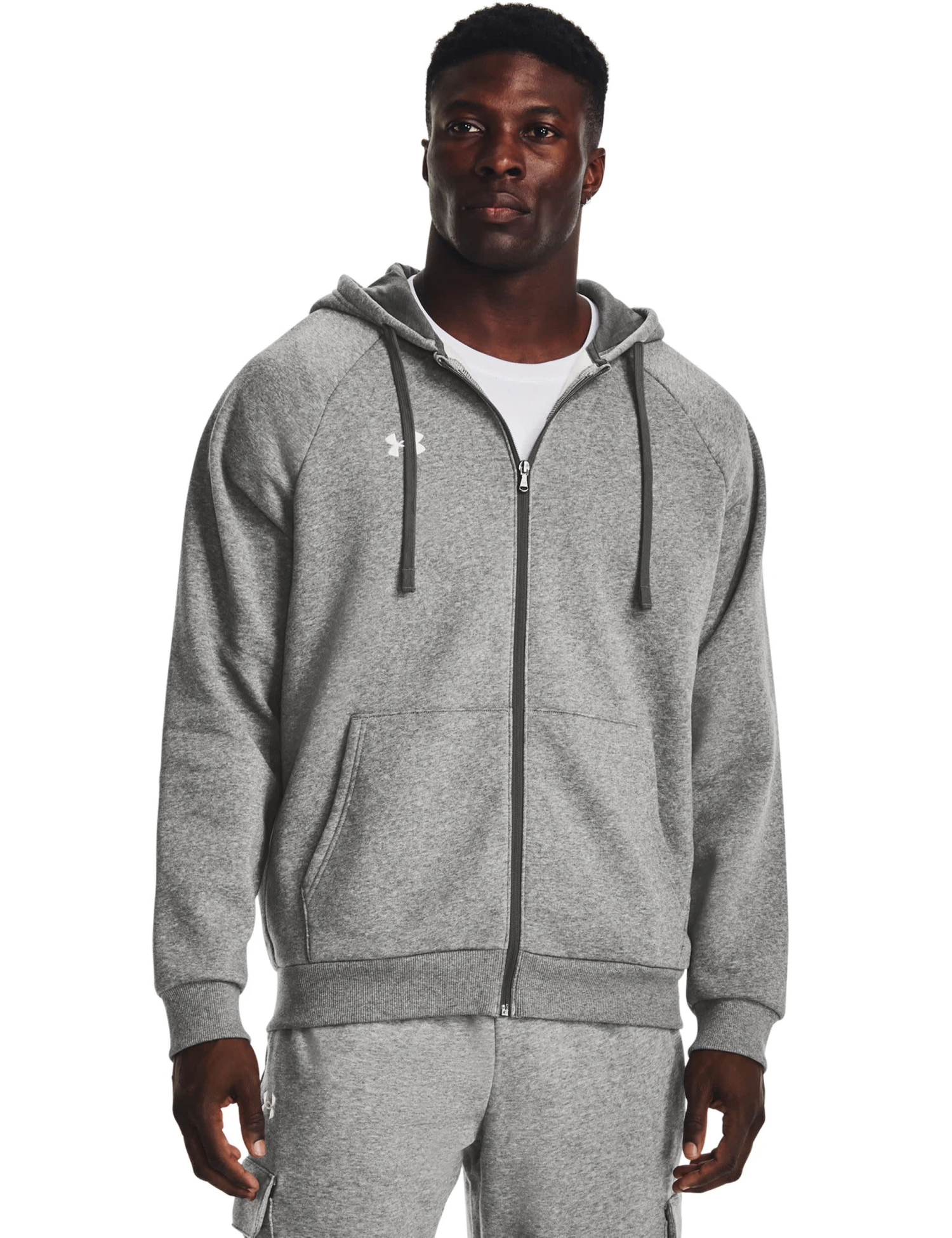 Layer up in style with this cotton-rich fleece hoodie from Under Armour. It’s made in a regular fit, with a full zip closure and a drawstring hood. The super-soft brushed inside ensures comfy wear, while the raglan sleeves provide greater ease of movement. Practical pockets complete the sporty design.