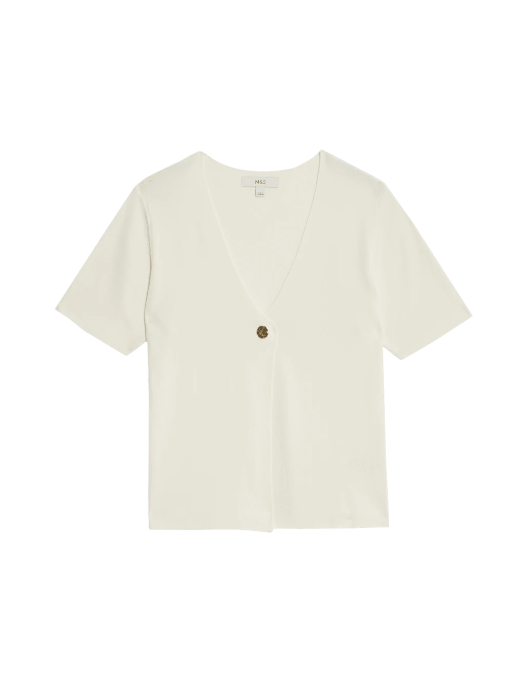 This v-neck cardigan is an easy piece to layer into your wardrobe. It’s designed in a relaxed fit with short sleeves and a button-through front. Ribbed trims add a neat finish. M&S Collection: easy-to-wear wardrobe staples that combine classic and contemporary styles.
