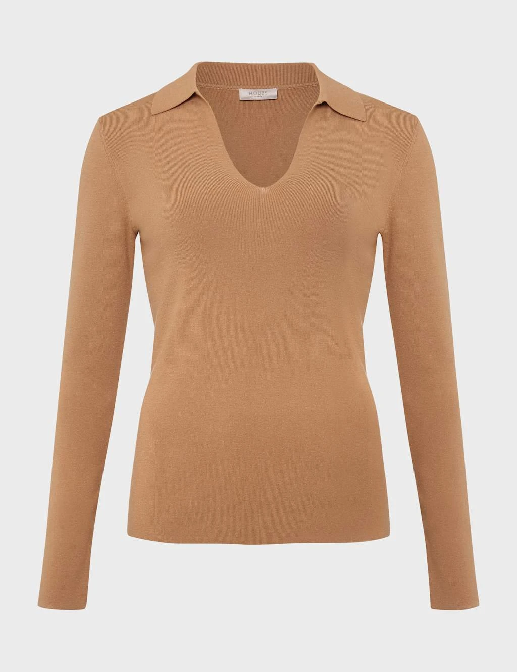 Give your smart-casual wardrobe a sophisticated update with this jumper from Hobbs. The understated design has a regular fit and a feminine v-neck with a collar. It’s finished with long sleeves for cosy feel.