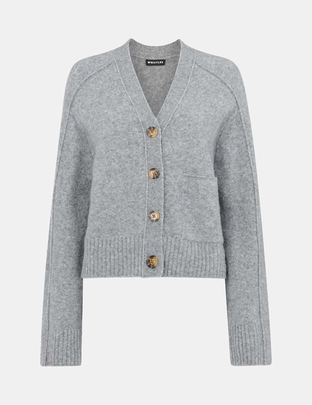 This wool-blend cardigan from Whistles is a versatile piece for your cold weather wardrobe. It’s designed in a relaxed fit for a slouchy look, with a flattering v-neckline and chunky button fastenings. This cosy piece is complete with a handy patch pocket on the front.