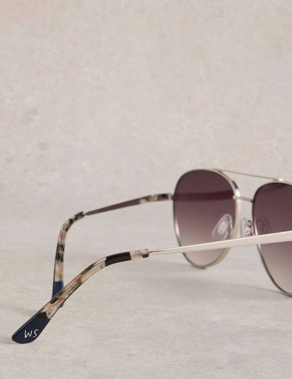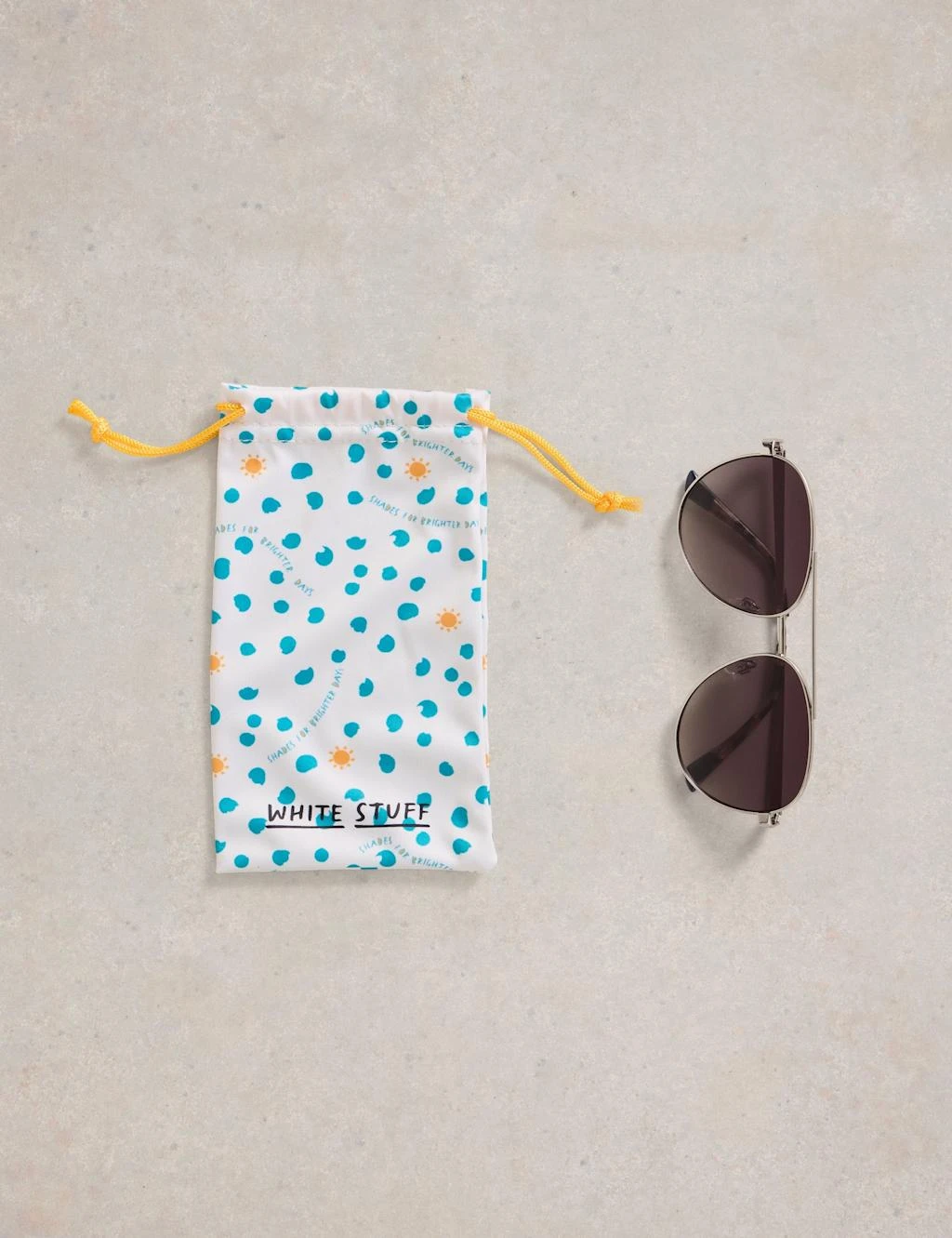 These aviator sunglasses from White Stuff are an iconic choice for sunny days. This classic style features a double bridge and slim metal frames for a sleek look. The brand’s initials appear at the end tips for a signature touch. They come with a playfully printed soft pouch, to protect the lenses when not in use.
