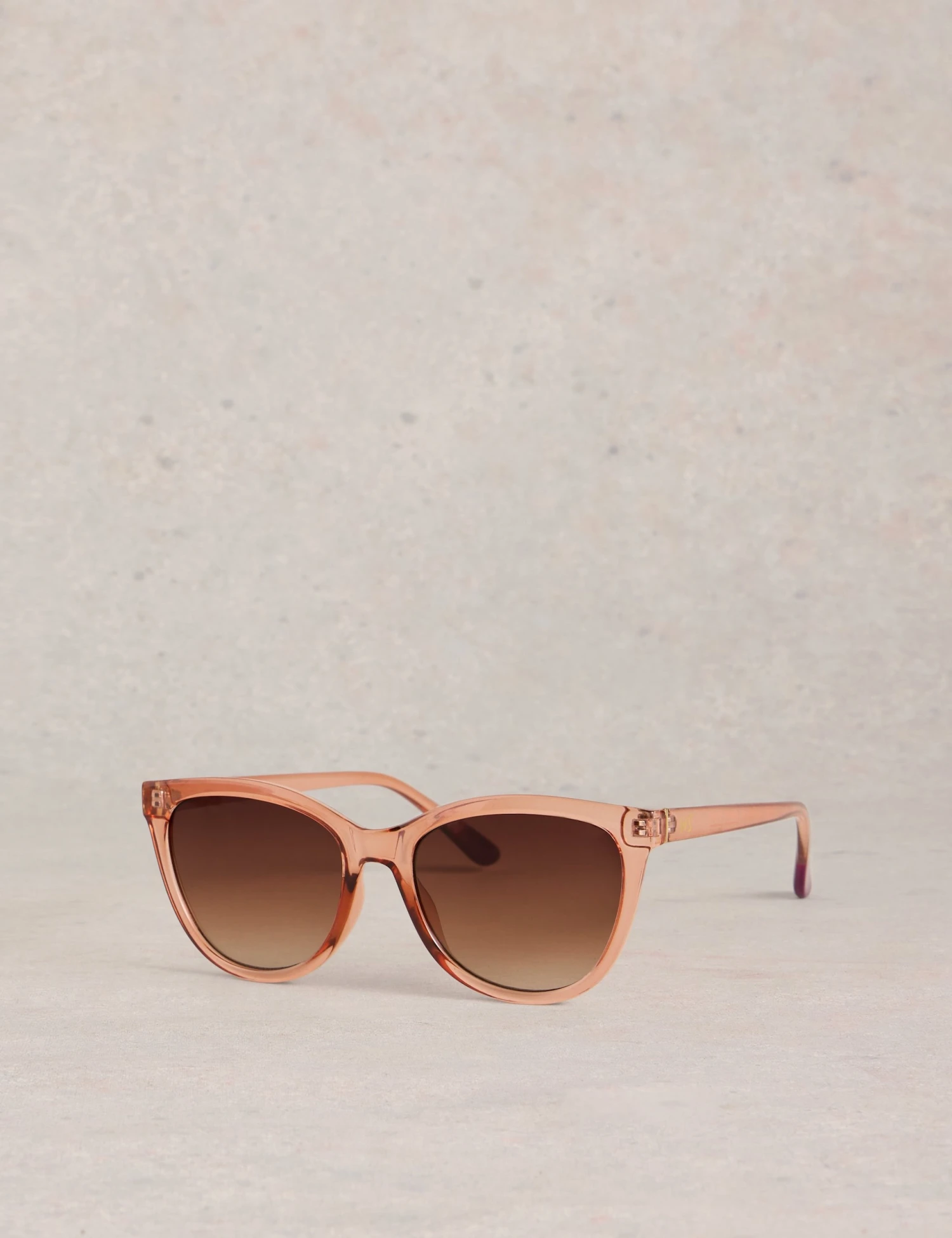 These sunglasses from White Stuff will bring an effortlessly cool finish to any outfit. The lenses are slightly rounded, with a gradient effect for subtle shading. A timeless cat-eye shape creates a feminine feel, while the semi-sheer polycarbonate frames deliver a light, barely-there look.