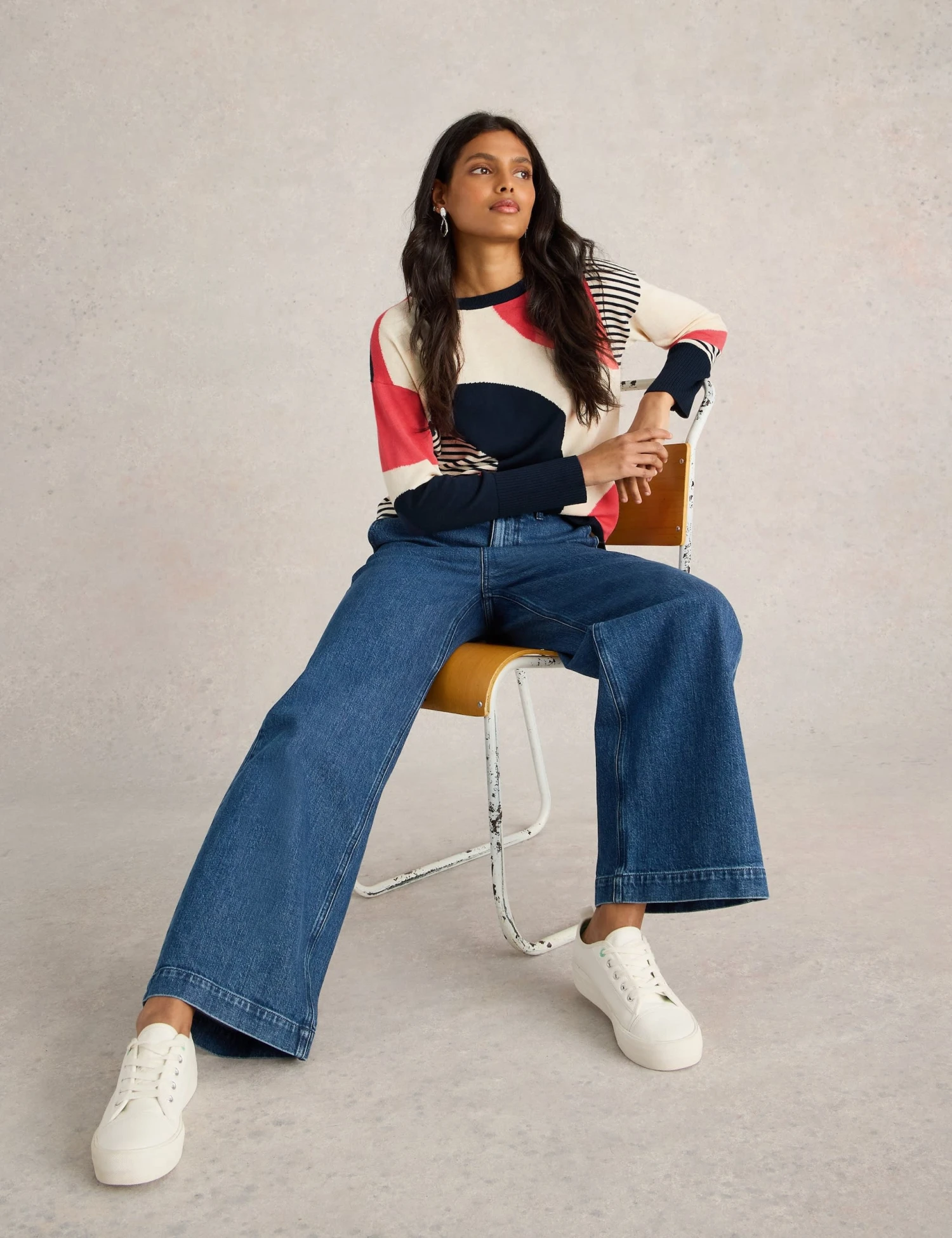 This cotton-rich jumper from White Stuff is a cheerful choice for chilly days. It’s made in a comfy regular fit, with a crew neck and dropped shoulders for a laidback feel. An abstract colour block design gives this piece a striking look.