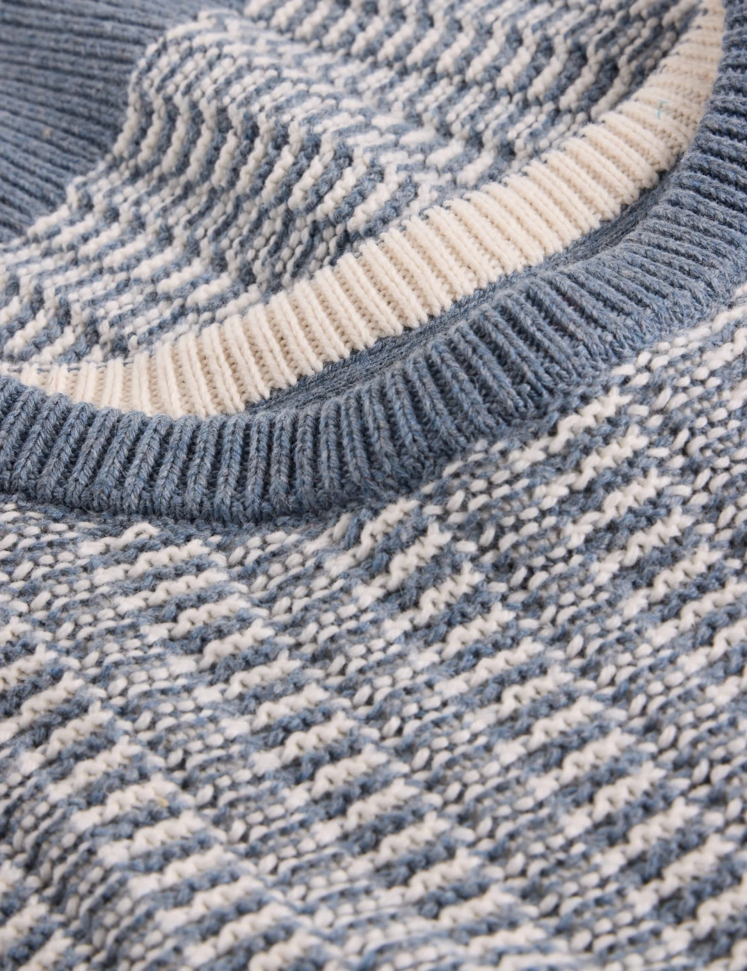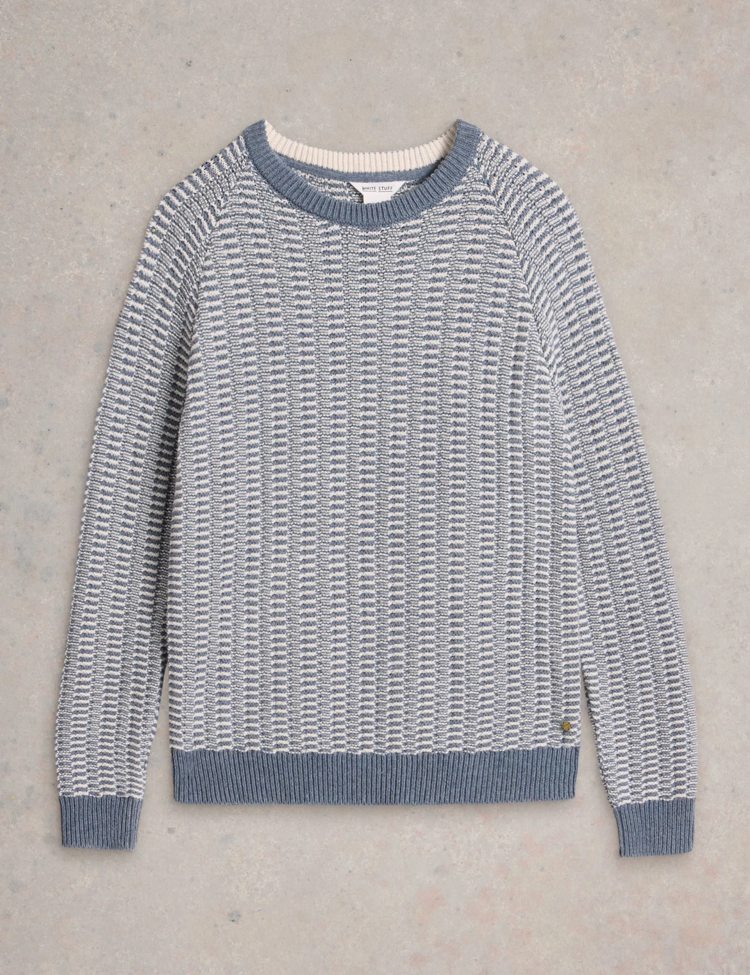 This textured jumper from White Stuff is made with merino wool for a cosy feel. Easy-to-style crew neckline. A vertical pattern and contrast ribbed trims add refined touches.