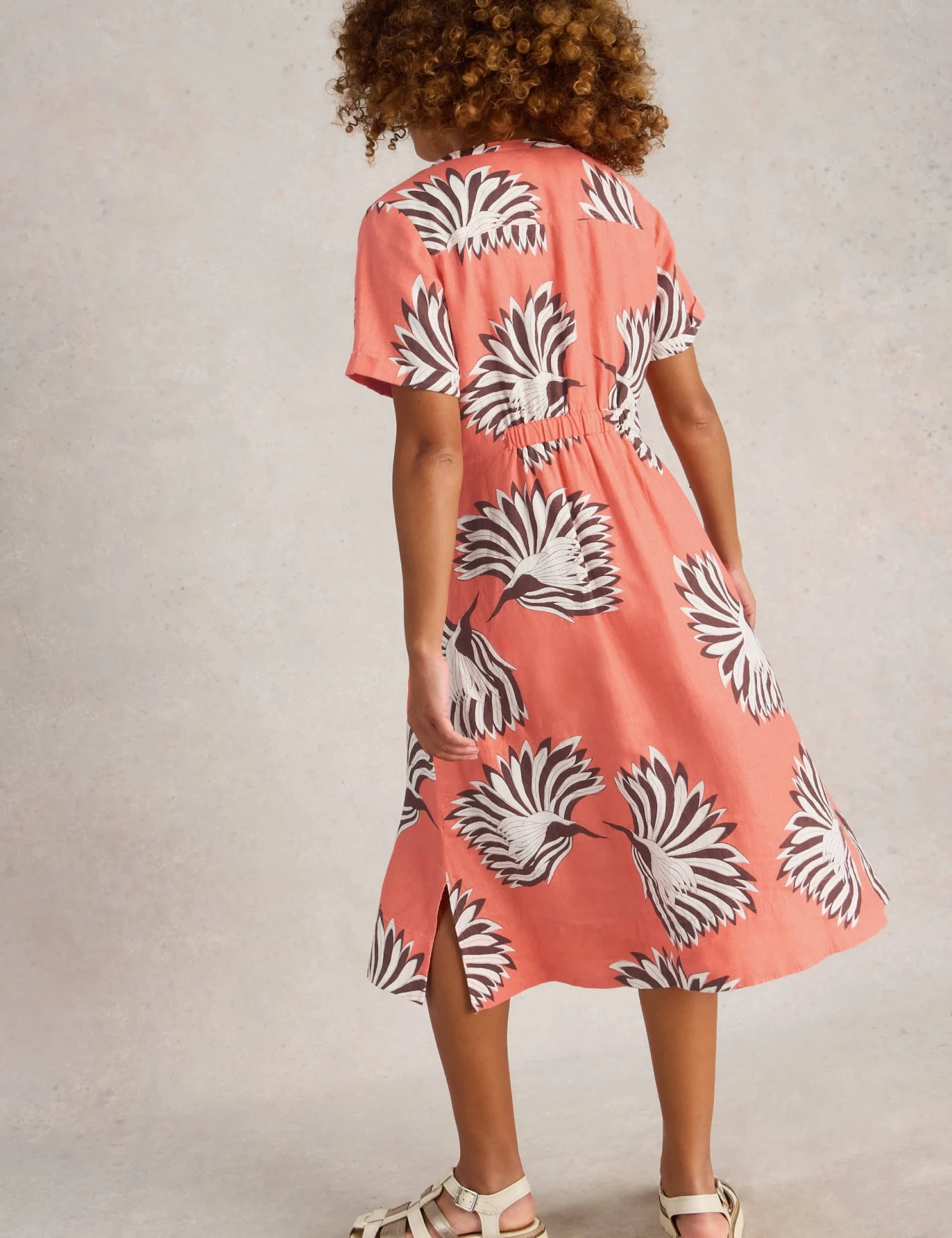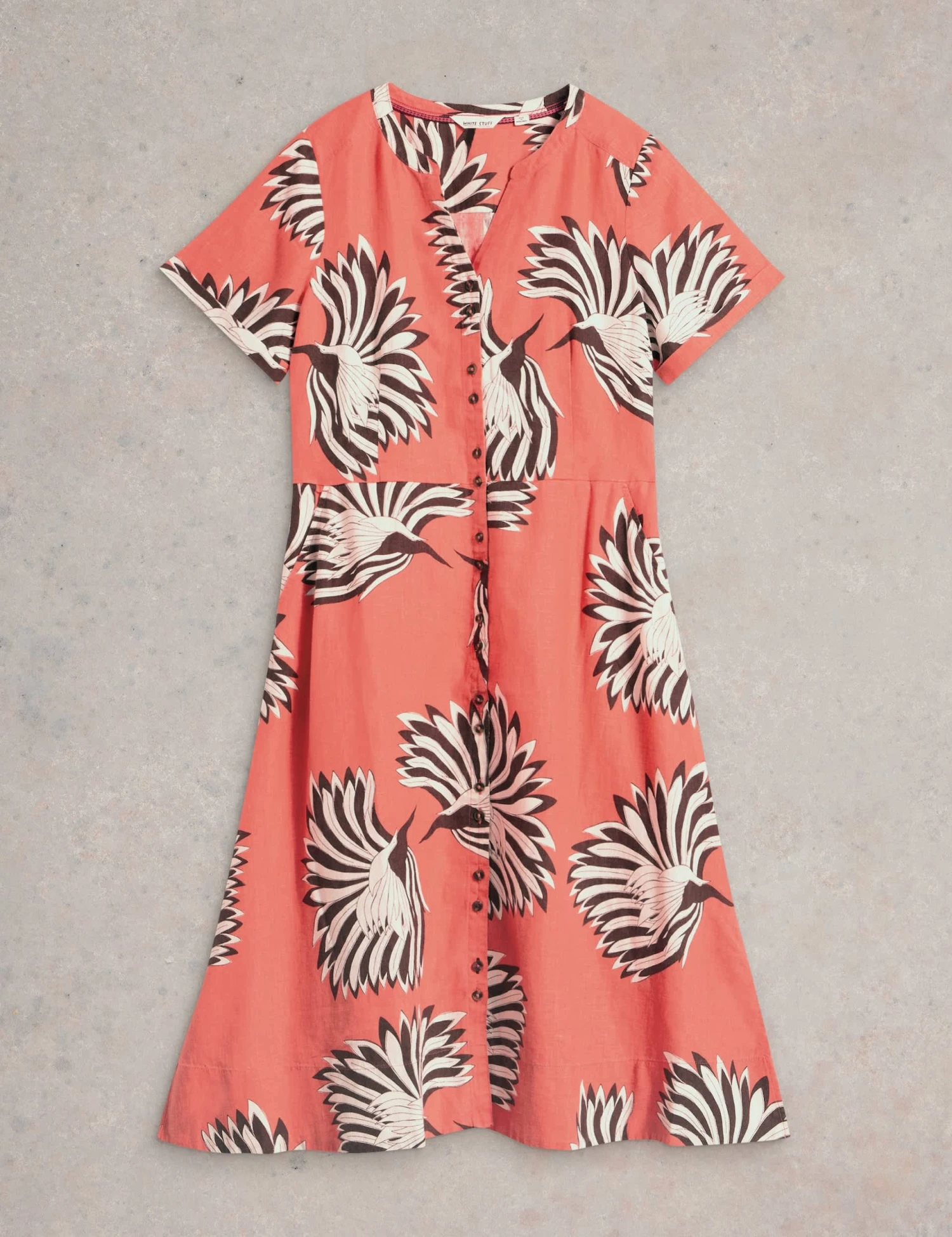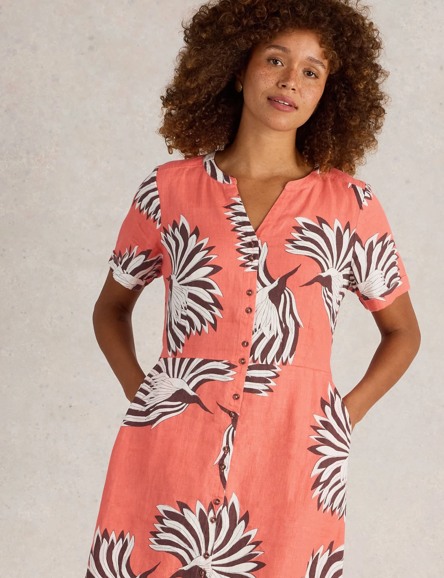 This White Stuff tea dress is crafted from linen-rich fabric for a premium look and a breathable feel. It’s cut in a comfy regular fit, with short sleeves and a feminine notch neckline. Button-through fastenings mean you can wear it your way, while a midi-length hem ensures a flowing silhouette. A vibrant abstract print lends a standout finish.
