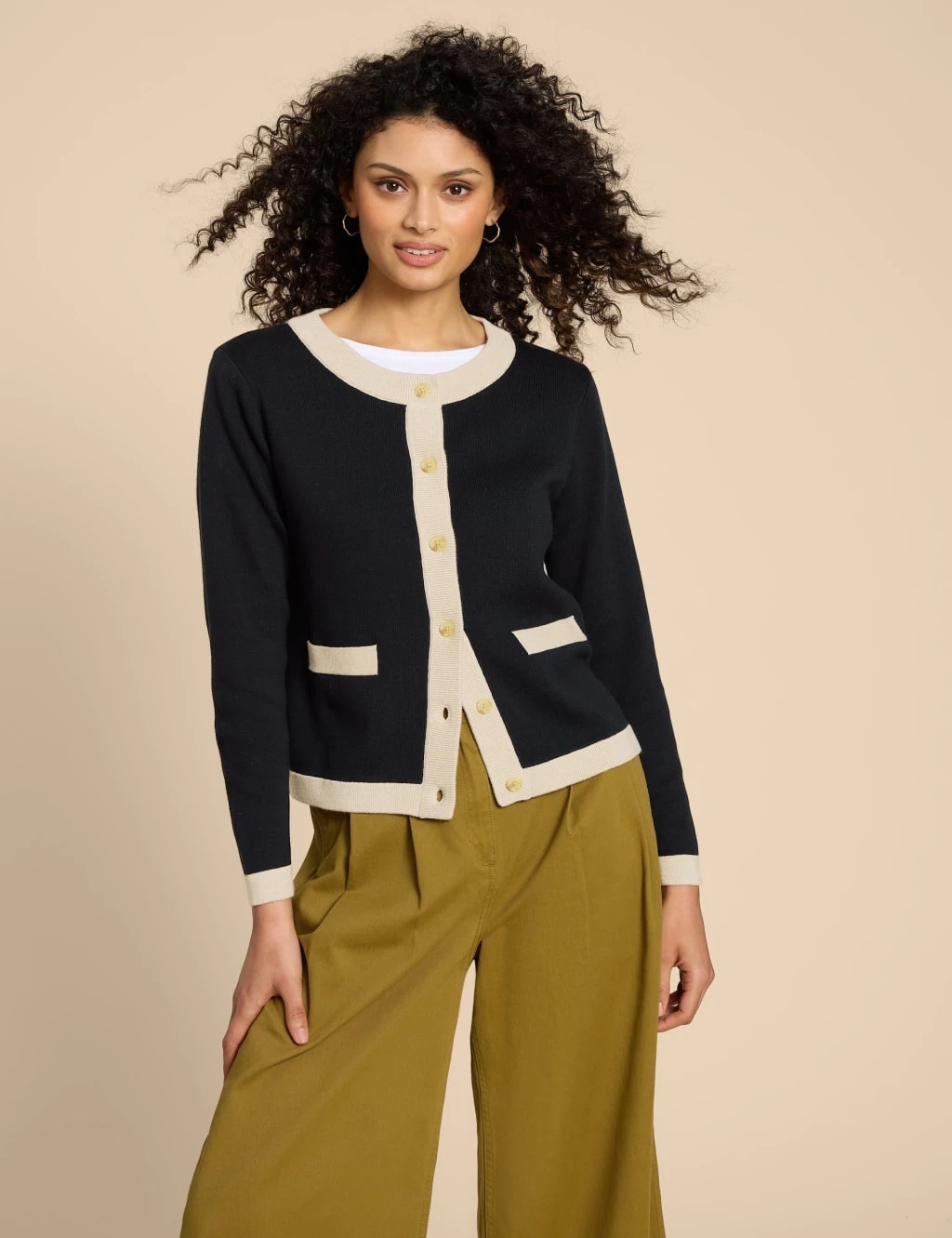 This pure cotton cardigan from White Stuff is an elegant transeasonal piece. It’s made in an easy regular fit, with a round neckline and button fastenings on the front. Contrast trims and faux front pockets give the piece a smart finishing touch.