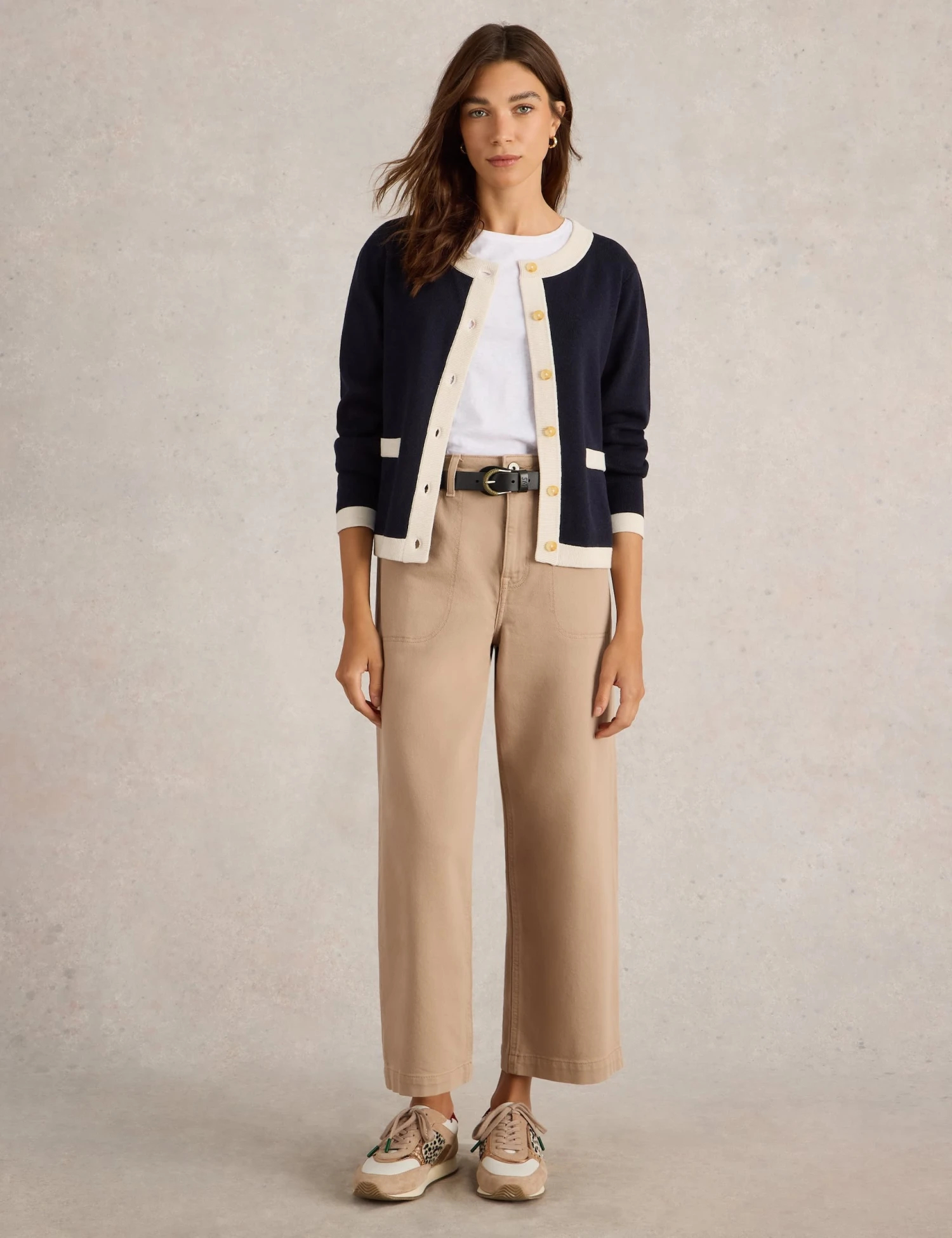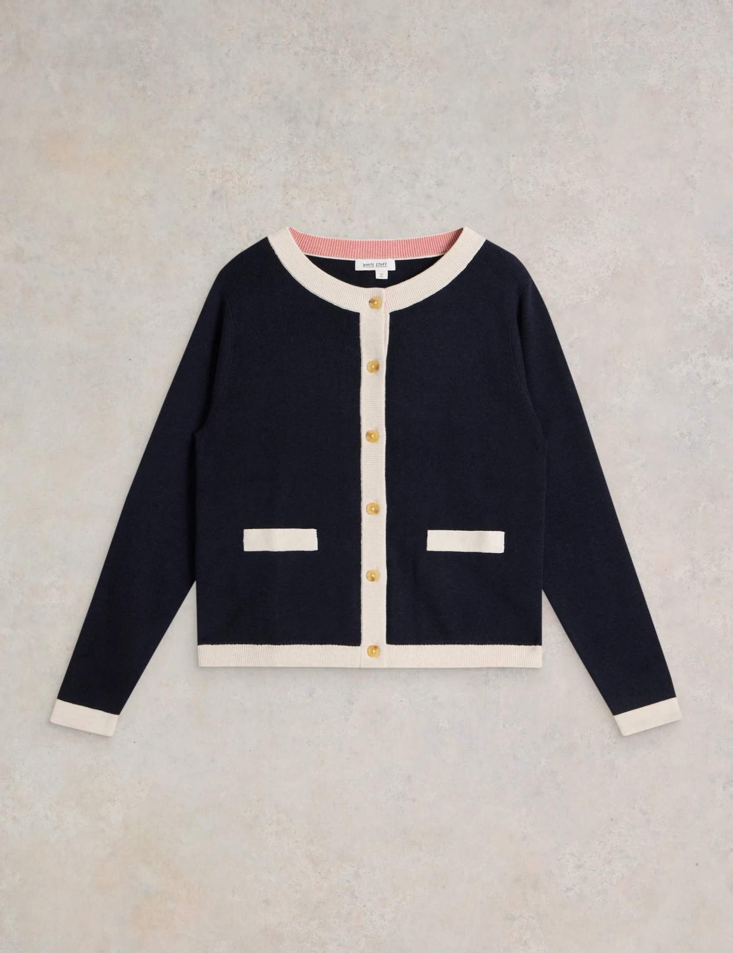 This White Stuff cardigan is crafted from pure cotton yarn for a cosy feel on cooler days. It’s knitted in a comfortable regular fit, with a neat crew neckline and subtle texture. Contrast trims and a button-through front finish off the classic style.