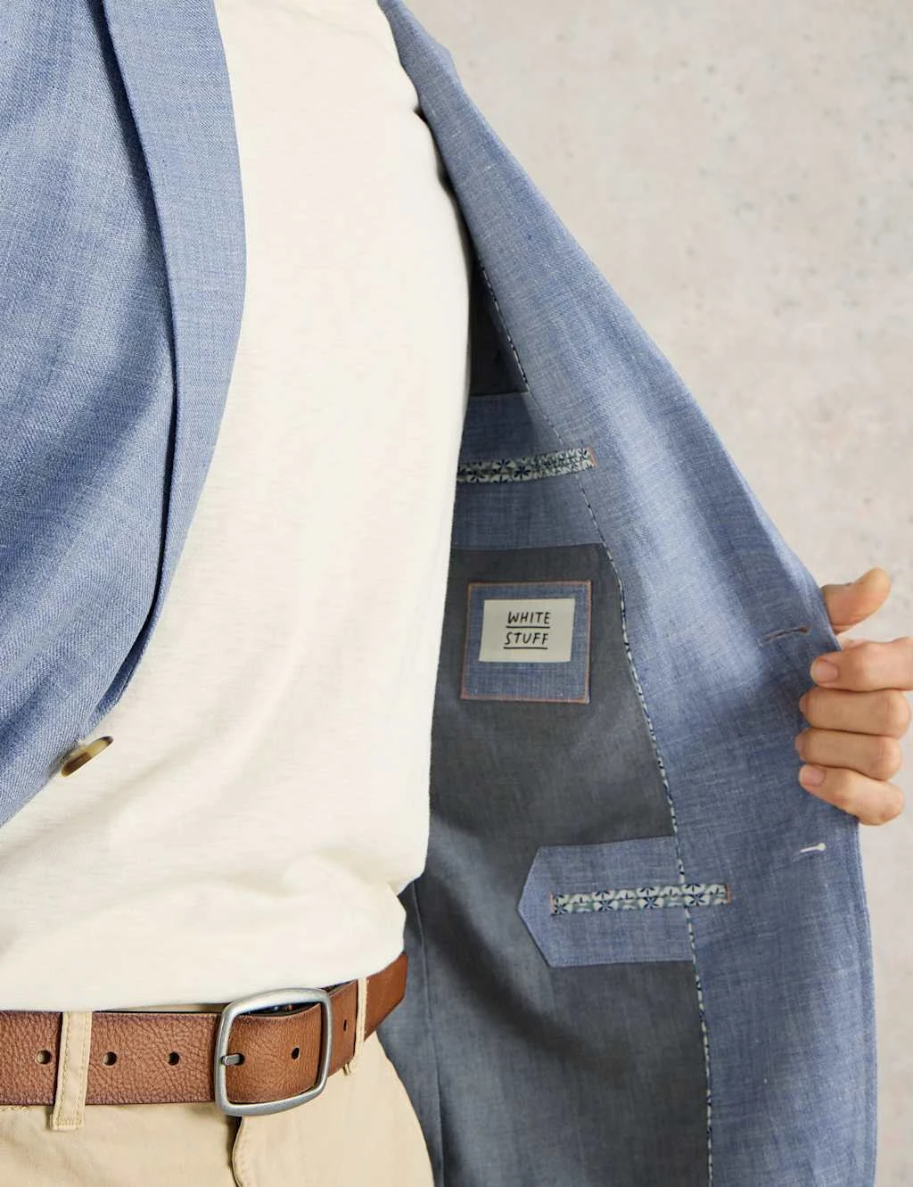 This lightweight blazer from White Stuff is crafted from pure linen for a premium look. The single-breasted design is cut in a regular fit, with a neat two-button fastening. It features two patch pockets at the hips and a single pocket on the chest for a smart touch.