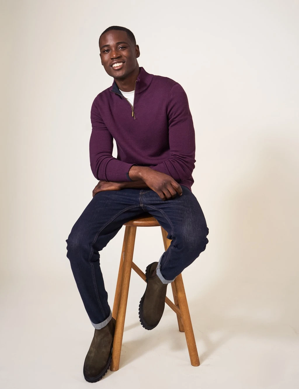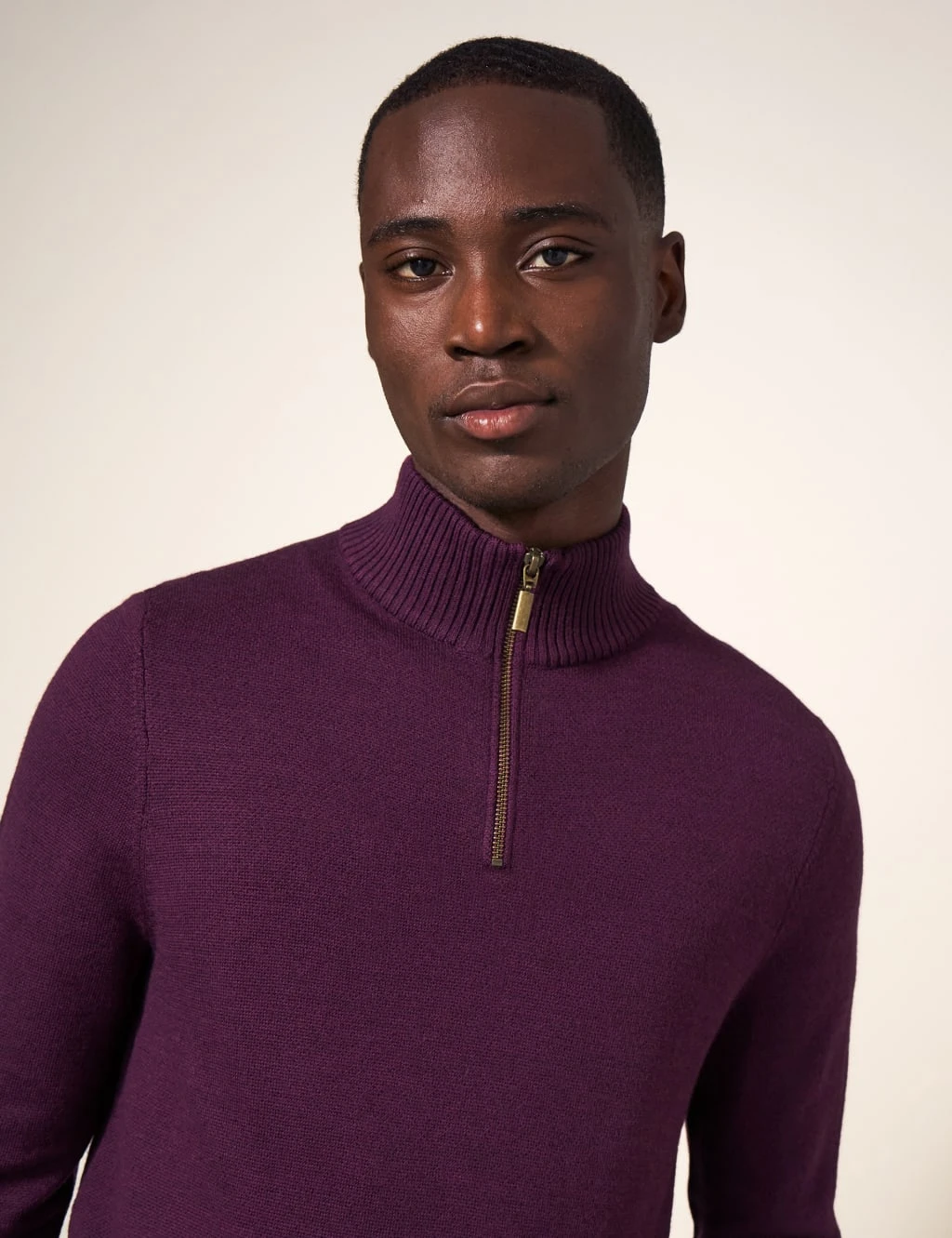 This premium jumper by White Stuff combines luxurious pure merino wool with off-duty appeal. The warm funnel neck has a half-zip fastening for a casual touch. Ribbed detail at the collar, cuffs and hem lends a neat finish.